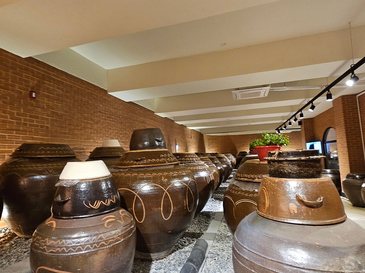 카페로 들어서니 큰 대형 항아리가 토굴숙성실에서 발효되고 있었고 카페에서는 장류를 팔고 있었다. 뜨거운 햇살에 발효가 잘되었을 것 같아 간장하나를 집어 들었다. 장독을 보는 것만으로도 즐겁고 좋은 물건을 사서 기쁨이 배가 되는 하루였다.