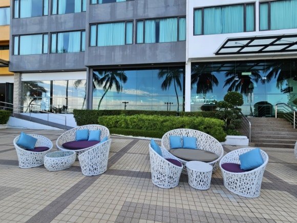 아침에 눈을 떠보니 7시경인데도 깜깜하다. 해변 산책을 나가려다 조금 잠이 들어 8시에 눈을 뜨니 해가 중천이다. 서둘러 해변가를 걸어본다. 호텔 유리창에 비치는 해변의 모습은 한 폭의 그림이다. 아직도 붉은기가 남아있는 해변을 조심스레 내려가 본다.