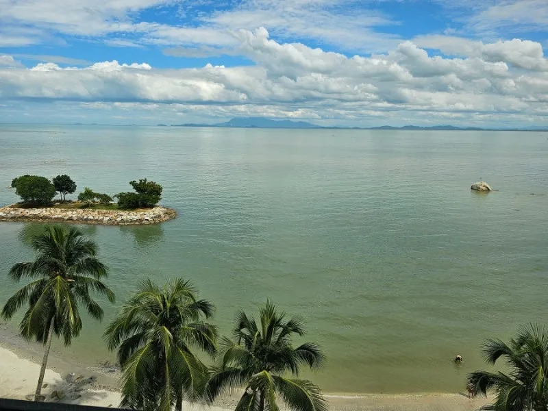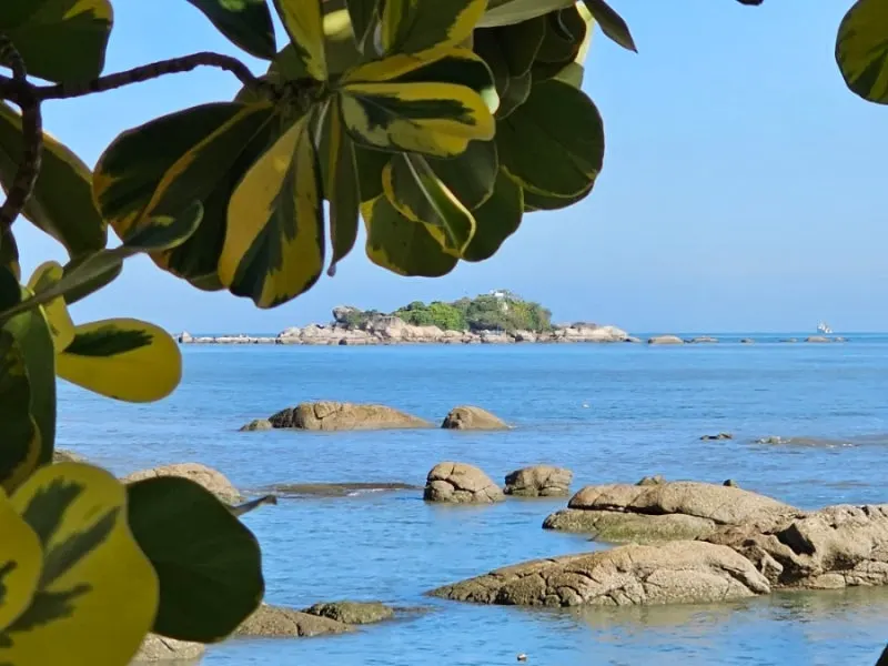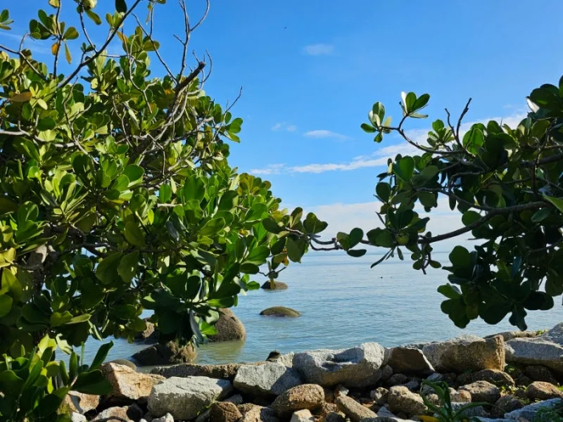 먼저 왼쪽 조그만 섬을 조심스럽게 올라가 본다. 나뭇잎 사이로 보이는 바다는 너무 아름답고 햇볕은 따가운데 나무 그늘은 엄청 시원하다. 초록과 하늘이 대조되어 조그만 바위에 앉아 수평선 너머를 바라다본다. 아침이어서 좋기도 하지만 먼지하나 없는 청명한 공기가 초록의 색깔로 코끝을 스쳐 모든 잡념이 정화되는 느낌이다.