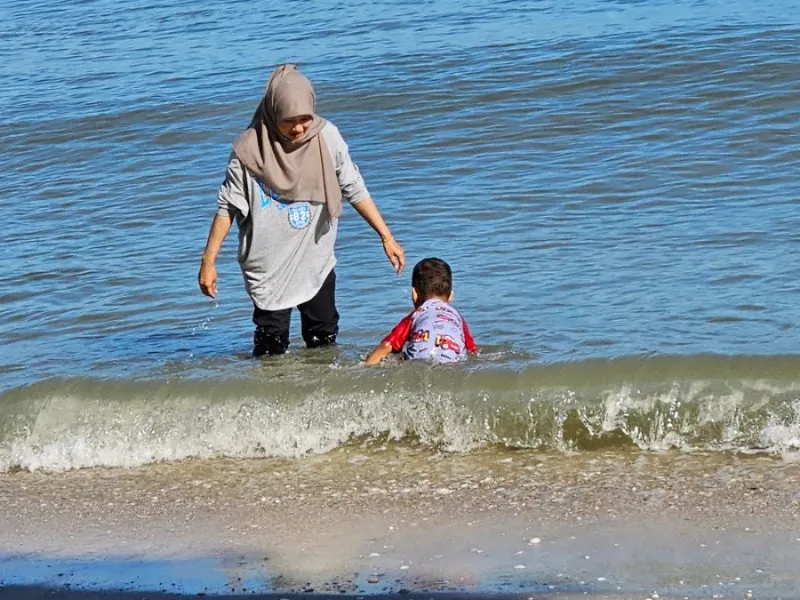 엄마와 노는 아이들의 모습도 정겹고, 한 가족이 바다를 바라보며 서 있는 모습은 영화 속의 한 장면 같았다. 가족들이 단체로 아빠들 시합을 하는 모습도 흥미로웠다. 그들은 일상생활을 빠져나와 더위를 피해 모두 동심 속으로 돌아가 시간을 즐기고 있었다. 해변을 산책하며 그들만의 세상에 빠져드는 모습을 보는 것만으로도 외로움대신 마음의 따뜻함이 파도처럼 밀려온다.