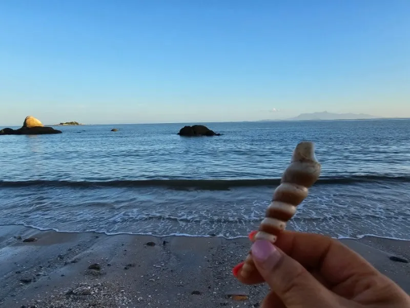 모래 해변을 걷다 한 소년이 무엇을 잡은 것 같았다. 물어보니 말없이 고동을 보여주며 저쪽에 가면 더 많이 있다 말하며 나에게 가져가라고 손을 내민다. 나는 소년이 준 고동을 손에 꼭 쥐고 부드러운 모래에 발을 담그며 발 위를 스치는 물결을 온몸으로 느껴본다. 적당한 온기로 발을 감싸는 촉감은 머리끝까지 몸을 부드럽게 휘감는다.