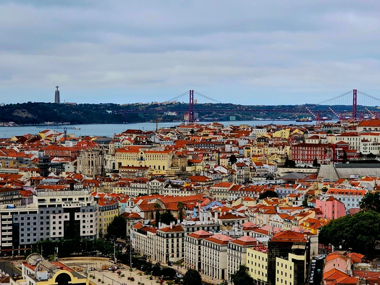 그라사 전망대에 오르자 리스본과 태주강을 한눈에 볼 수 있는 멋진 정경이 펼쳐진다. 주황색 지붕의 건물사이로 4.25 다리 가 보인다. 1962년 리스본과 알마다를 잇기 위해 태주강 위에 세워졌으며 길이 2,278m로 세계에서 가장 긴 다리라 한다. 전망대에 온 것을 기념하기 위해 누군가 걸어 놓은 많은 약속을 간직한 자물쇠도 보인다. 멋진 톡톡이 청년은 적절한 spot에서 사진도 찍어주며 우리의 여행을 더 즐겁게 해 주었다. 전망대를 내려오는데 같은 패키지 일행이 잠시 보이자 죄지은 것도 아닌데 빠져나오며 스릴을 느낀다.마치 선생님 몰래 도시락 먹는 기분이랄까?