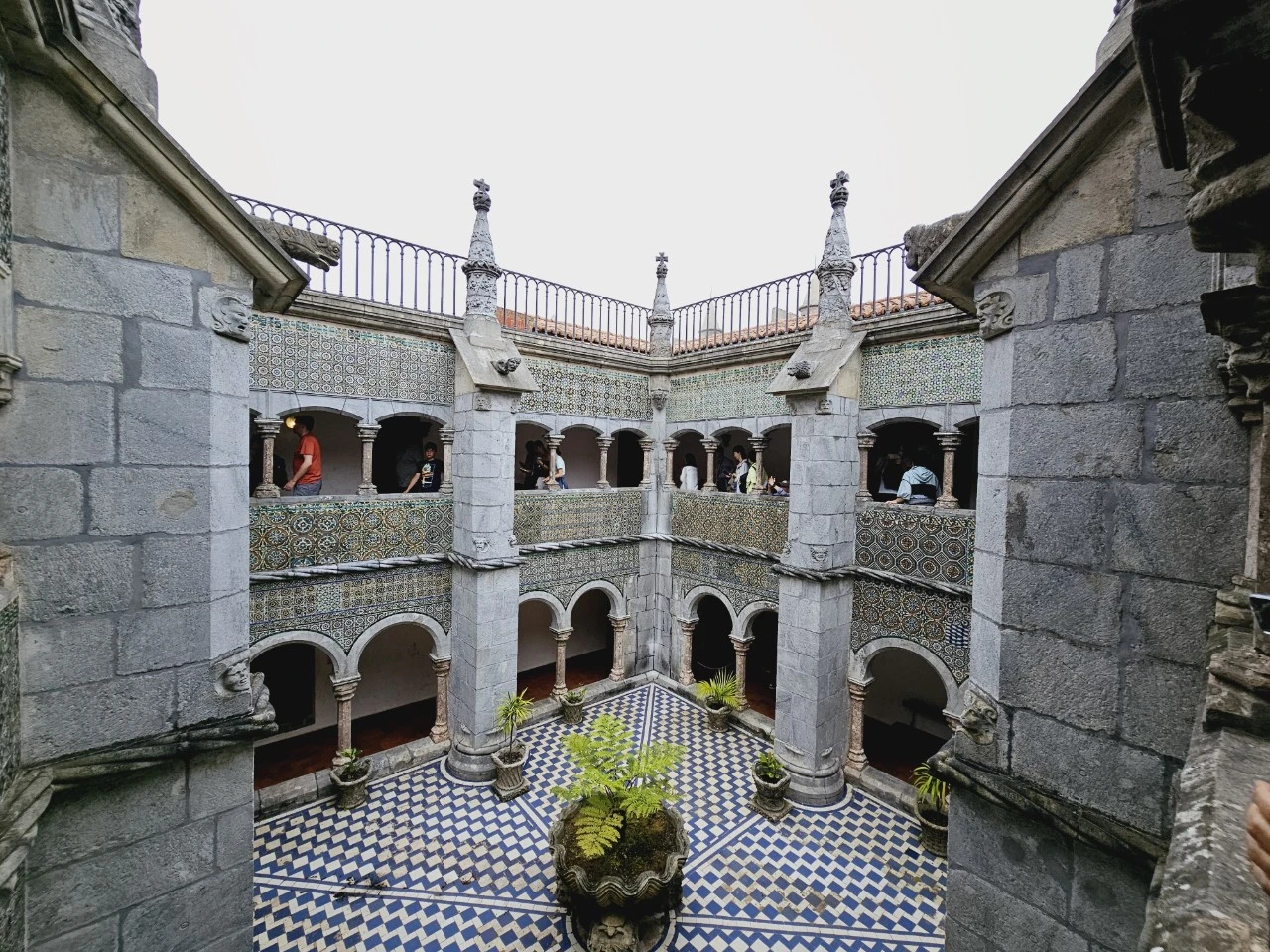 페나성 안으로 들어서자 둥근 아치형태의 건물과 기하학적인 아줄레주 문양의 마누엘린 회랑이 보인다. 하늘로 뻥 뚫린 회랑을 중심으로 다양한 종류의 방이 화려하게 꾸며져 있었다.