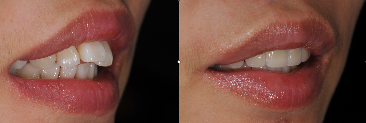 이가 삐뚤어져 있거나 튀어나와 있을 때 정상 범위에서 벗어나 있는 부분을 다듬고 그 위에 0.5~0.8mm 두께의 라미네이트를 붙입니다. 10일 동안 2~3회 치과를 방문해 치료합니다.