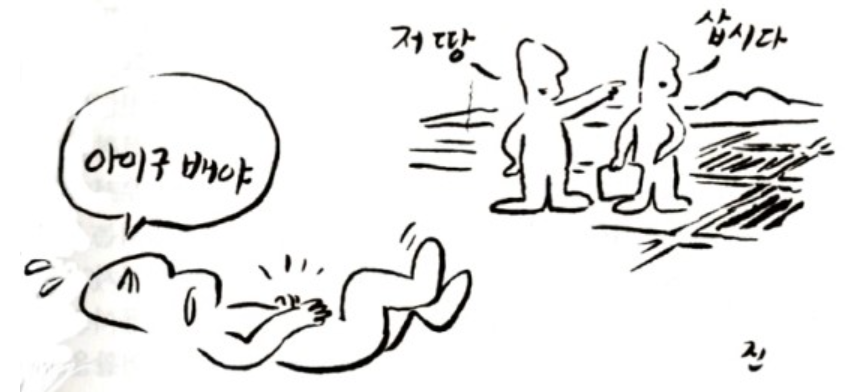 ‘사촌이 땅을 사면 배가 아프다’는 말은 사실 ‘사촌이 땅을 사면 배가 아파야 될 텐데’라는 말이 바뀐 것이라는 이야기가 있다. 농경사회였던 우리나라의 훈훈한 인심은 다른 사람이 더 잘되기를 바라는 마음에, 그 땅에 거름이라도 주고 싶은 마음에 ‘배가 아파야 될 텐데’라고 했다는 것이다. 인분은 땅에 좋은 거름이기 때문이다. 현재의 ‘배가 아프다’로 바뀐 이유는 일제강점기 때 우리 민족에게 식민사관을 심어 놓기 위한 일본인들의 작품이라는 것이다. 우리 민족은 훈훈한 민심이라고는 없는 서로 시기하는 민족이라는 것을 세뇌시키고자 한 것이다. 이런 내용이 사실이든 아니든 이제는 그냥 배 아파하는 것만으로는 안 되는 것이 현실이다. 시기와 질투 자체는 나쁜 감정이라기보다는 본능에 가까운 것이다. 이 본능을 어떻게 다지느냐, 마냥 배 아파할 것이냐, 배가 아프게 하여 거름을 얹어주느냐는 개인의 몫이다.