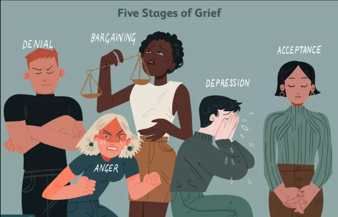 슬픔과 분노의 5단계(five stages of grief)는 엘리자베스 퀴블러 로스(Elisabeth Kübler Ross)가 거론한 죽음과 관련된 임종 연구 분야의 이론이다. 죽음을 서서히 맞이하는 과정은 부정(Denial)에서부터 분노(Anger), 타협(Bargaining), 우울감(Depression), 수용(Acceptance)의 단계들을 거치면서 이를 받아들이게 된다는 심리상태를 가리킨다. 머리글자를 따서 DABDA(다브다) 모델이라고도 부른다. 극단적인 죽음을 받아들이는 것과는 물론 좀 다르겠지만 질병을 받아들이는 환자의 심리상태도 이와 비슷하다. 별문제 없이 늘 건강하다고 자신했던 자신에게 발견된 질병은 쉽게 수긍이 가지 않을 때가 많다. 사실을 받아들이고 치료를 잘 받게 되기까지 환자는 극단적으로 부정적이고, 화를 내며, 우울감을 호소하고, 때로는 애처럼 매달린다. 가장 가까운 곳에서 의료진은 그 환자를 받아들이고, 지켜보고, 설득하고, 이끌고 가야 한다.