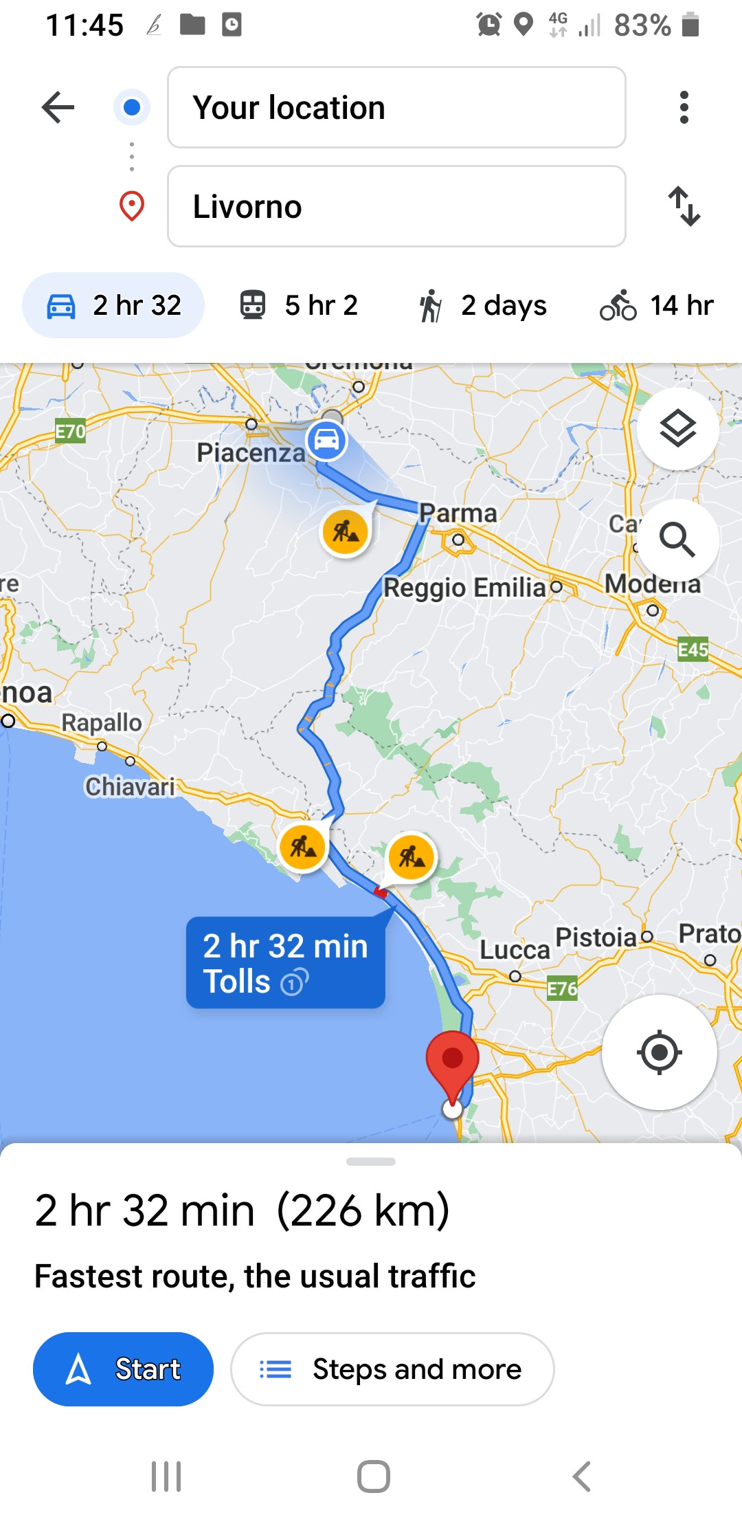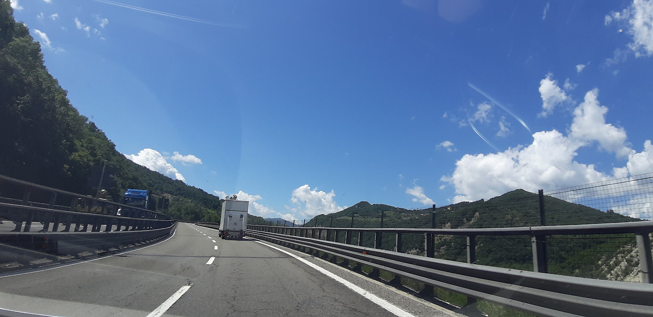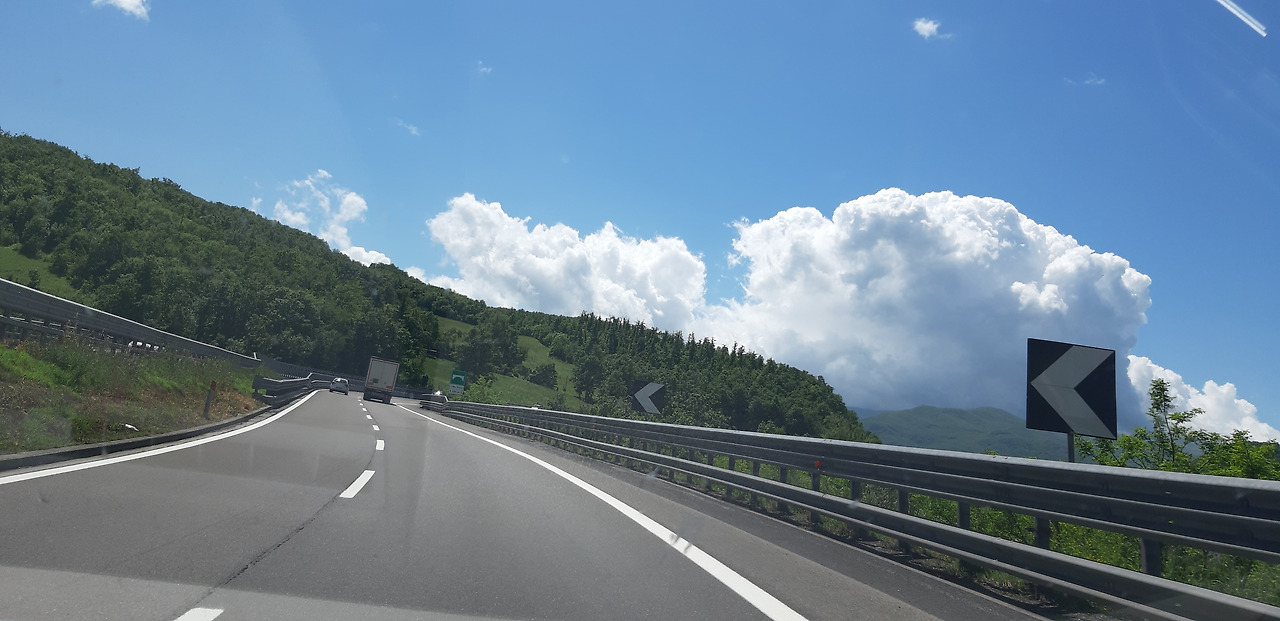 9. Livorno항구까지 가는 큰 트럭들이 많아 고속도로 운전이 쉽지 않았다. 특히 대형 큰 트럭들은 맨 오른쪽 차선에서만 규정된 안전속도로 운전을 해야 하는데 때때로 속도, 차선 위반이 자주 있어 위험하다고 생각했다. 도로공사도 3시간 운전하는 동안 5~6곳 본 것 같다.