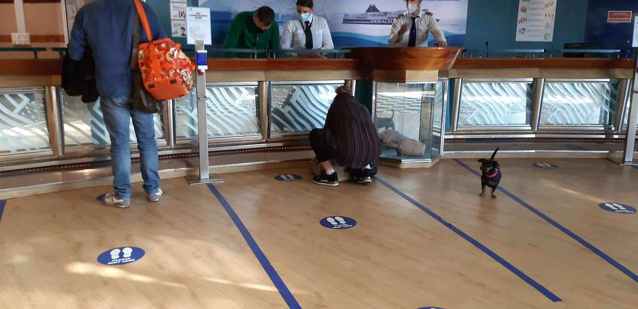 Livorno항구 도착해서 Parlemo 출항 페리 앞에서 2시간 전 대기 후 페리 안으로 진입
