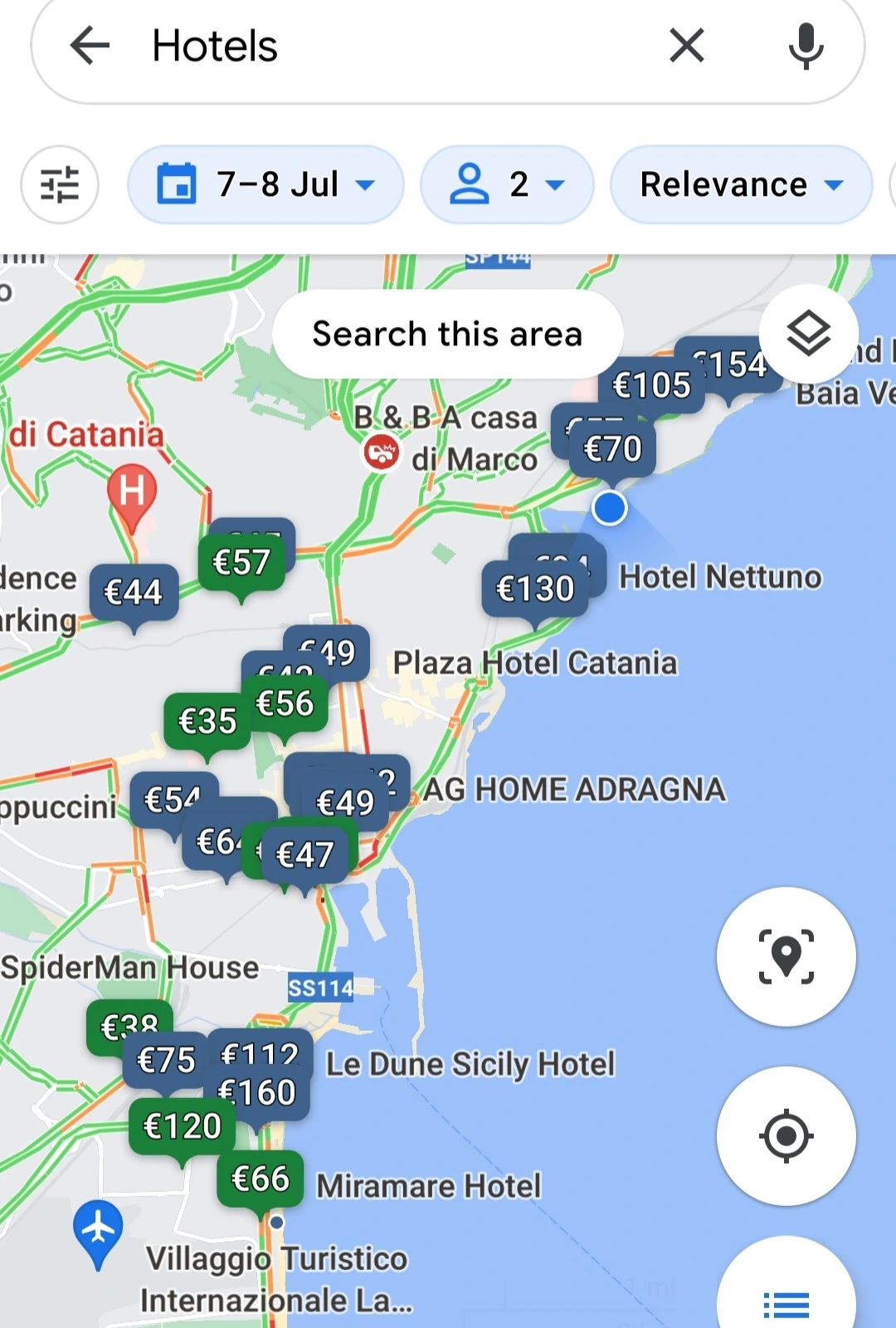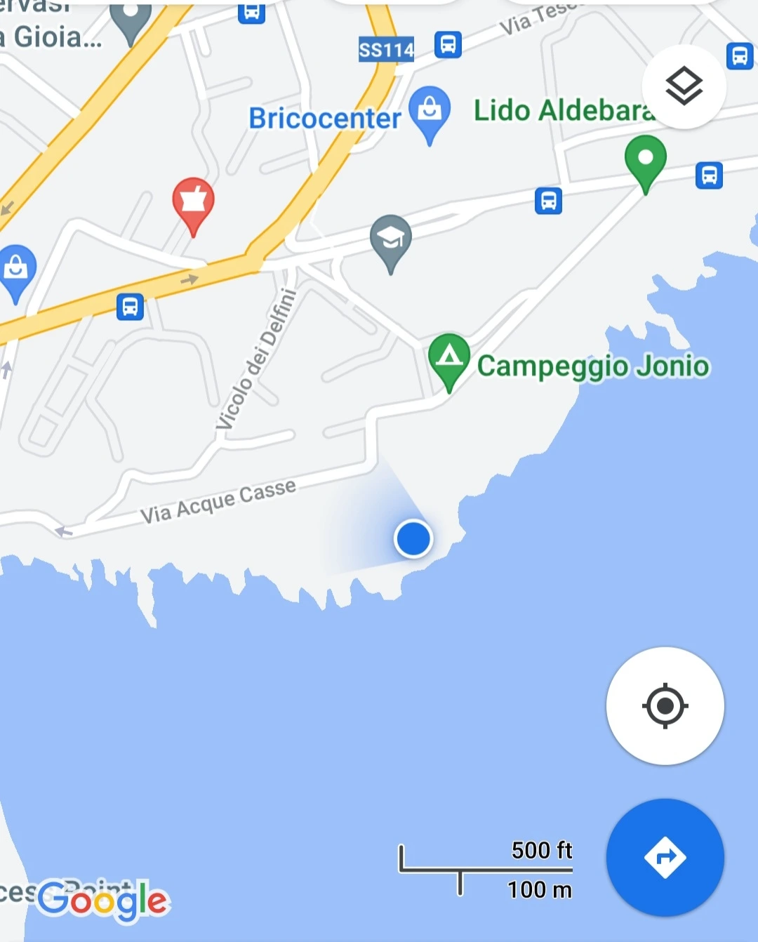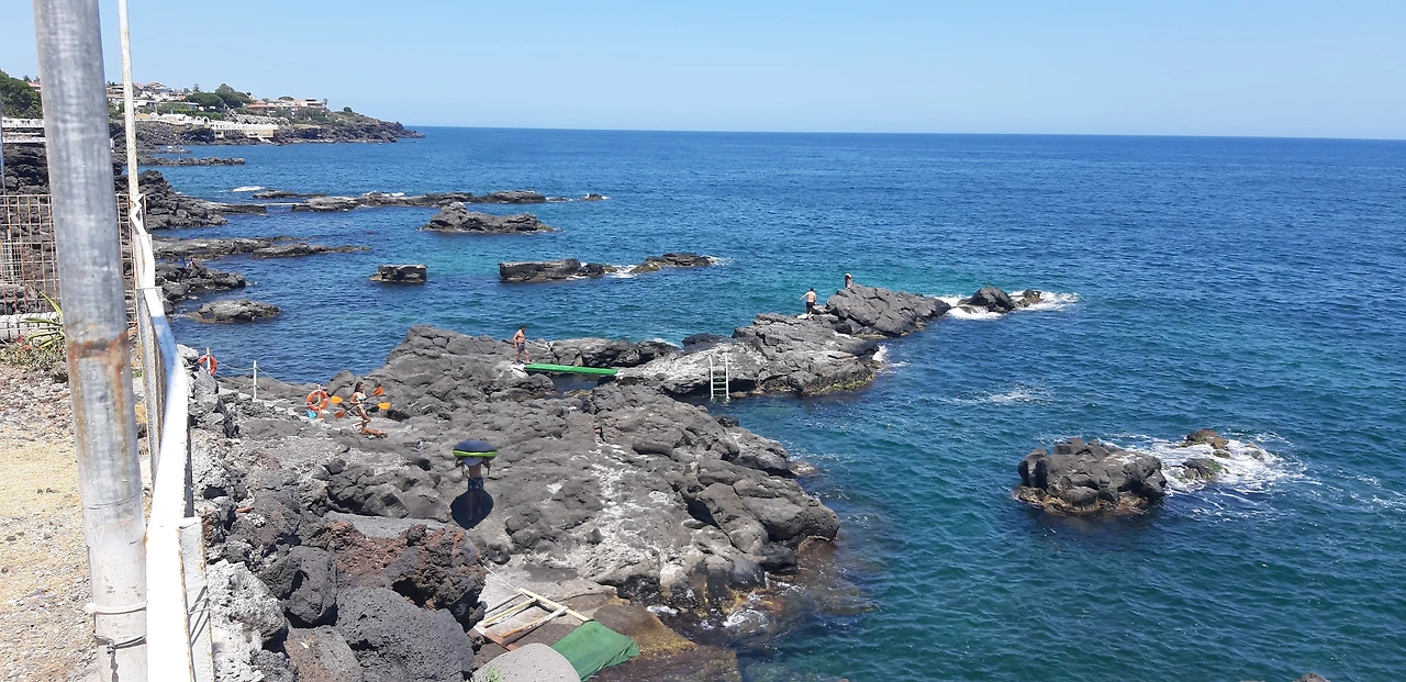 카타니아 해변을 확대하면 캠핑장소(방갈로 겸)가 초록색으로 보이죠? Campeggio Jonio (요니오 캠핑장)이에요.Booking.com에서 더 자세한 정보 받을 수 있어요.