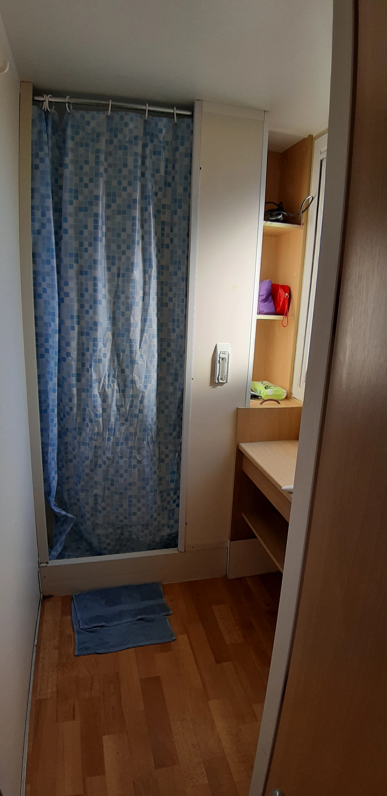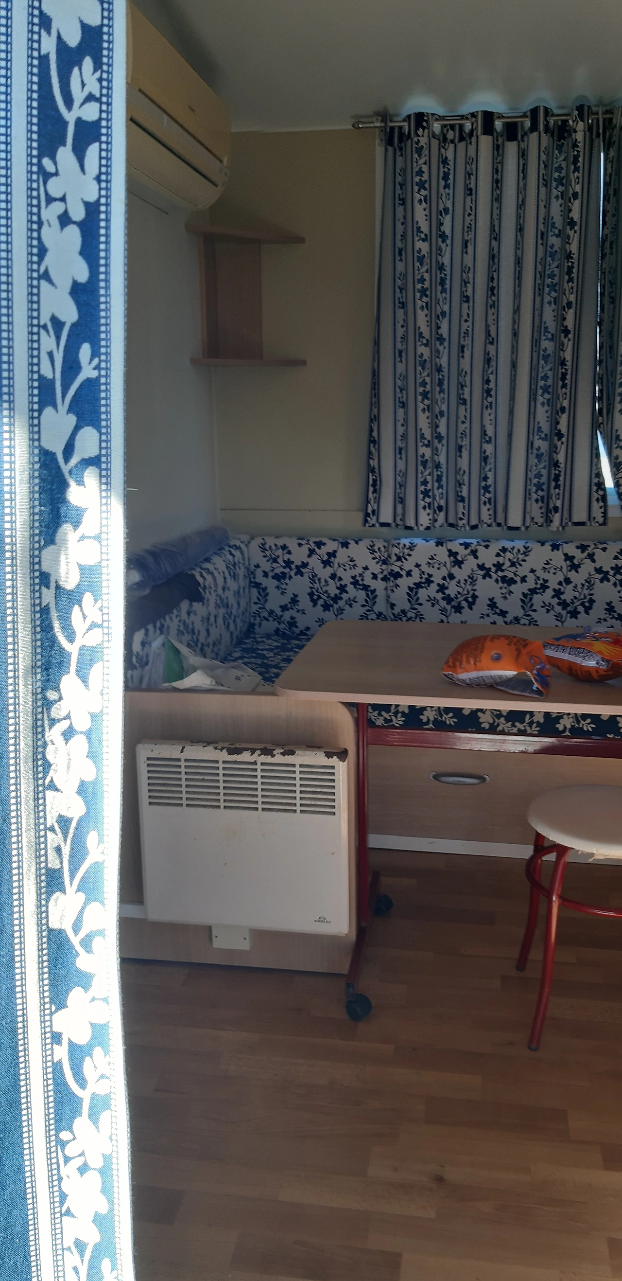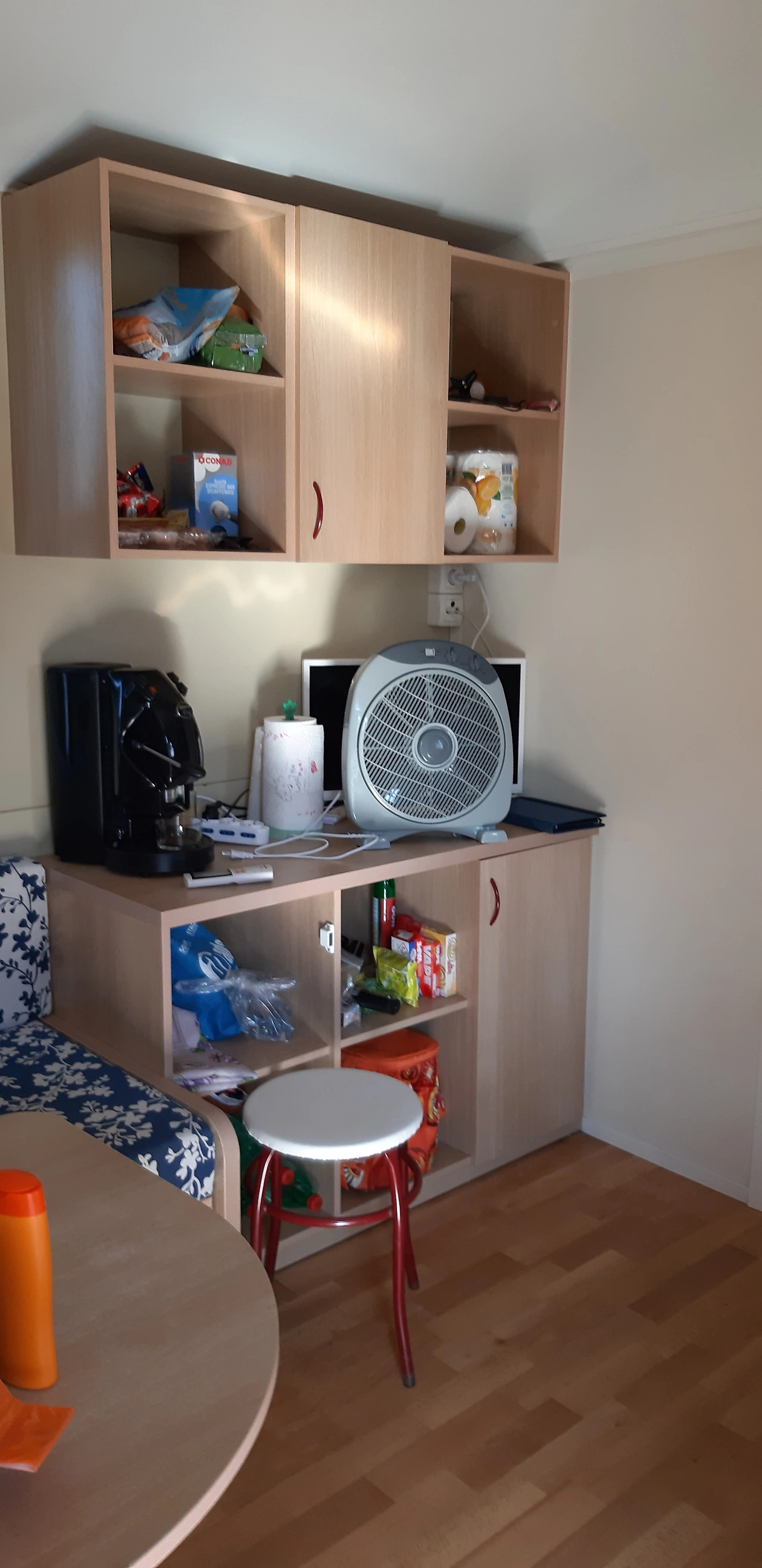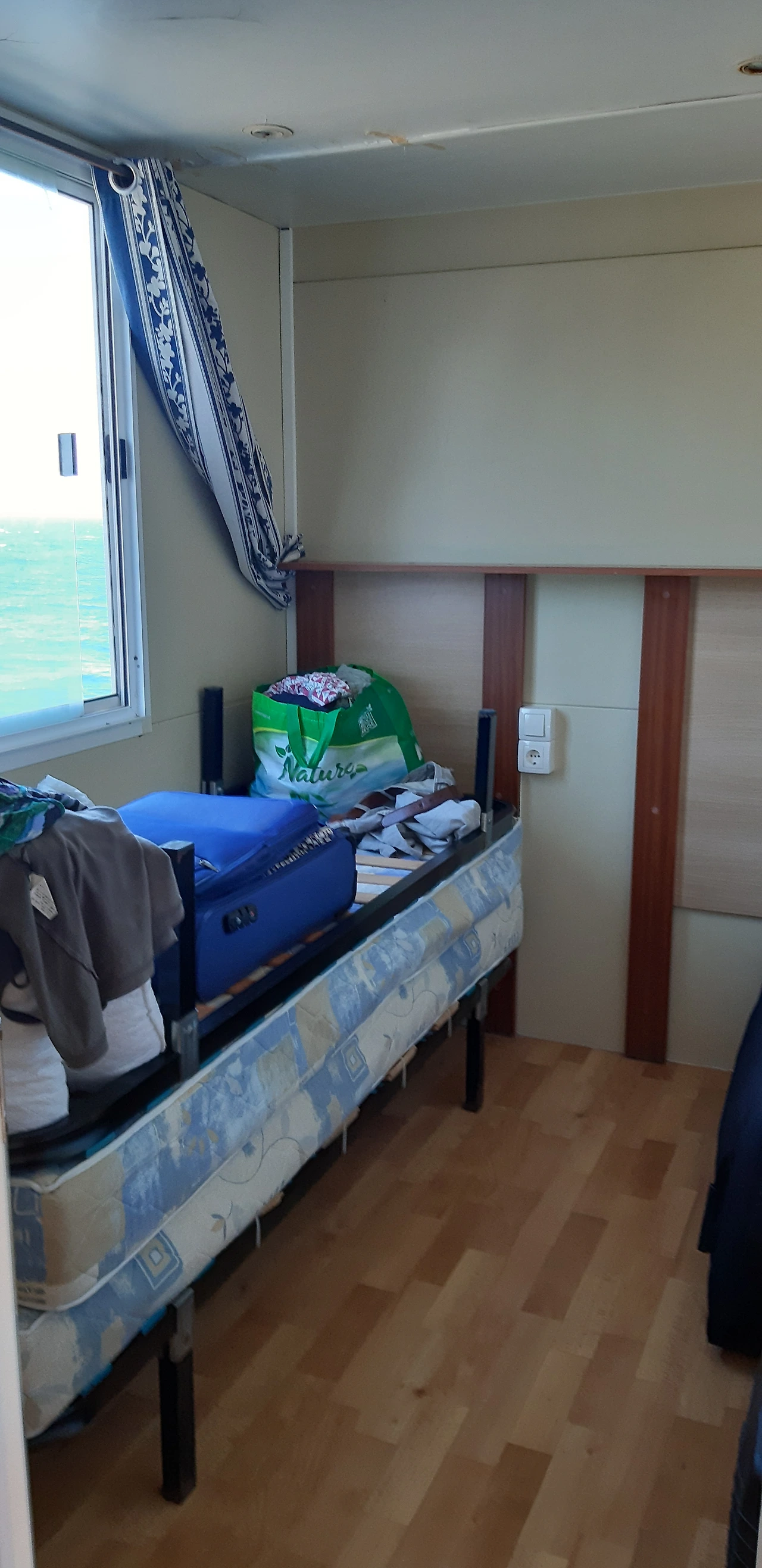 방 둘이고 각 방당 2명씩 취침 가능해서 한 방은 두 개 침대 포개고 짐 정리 방으로 사용했어요.