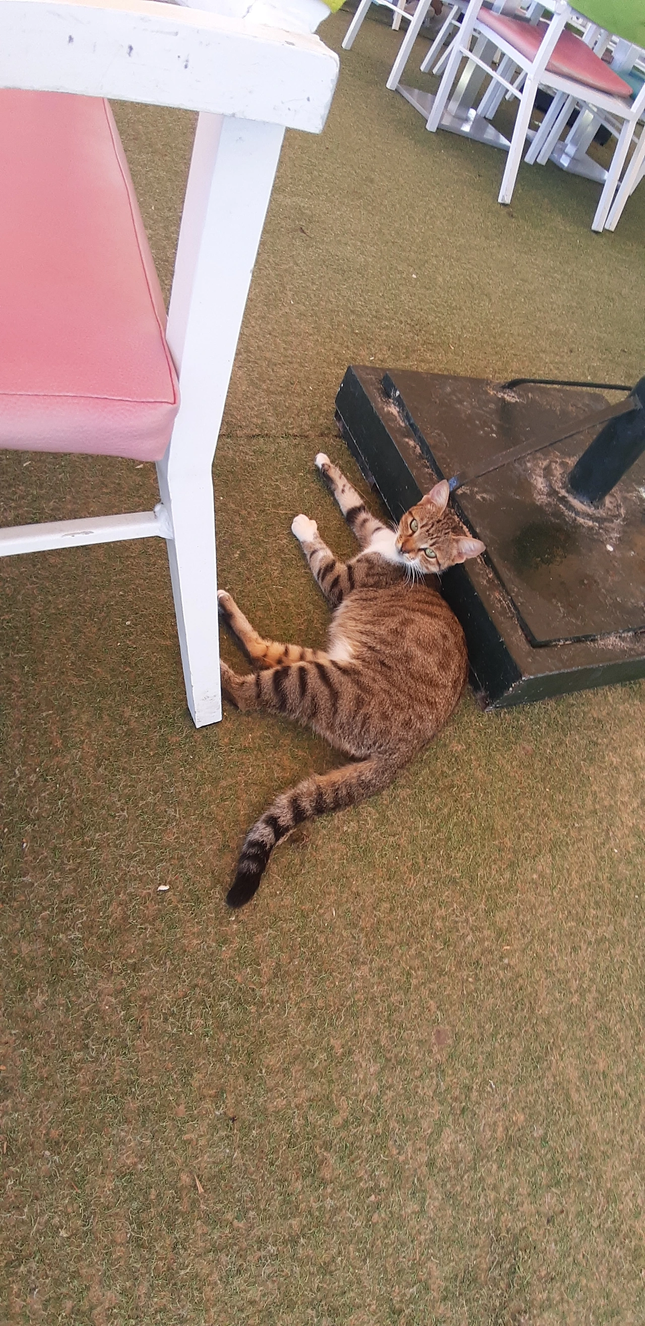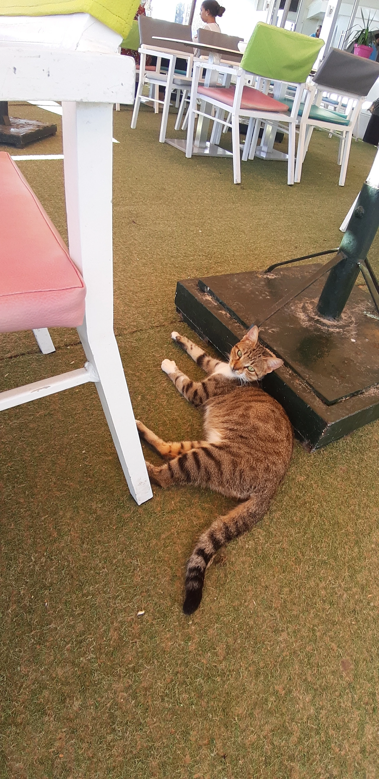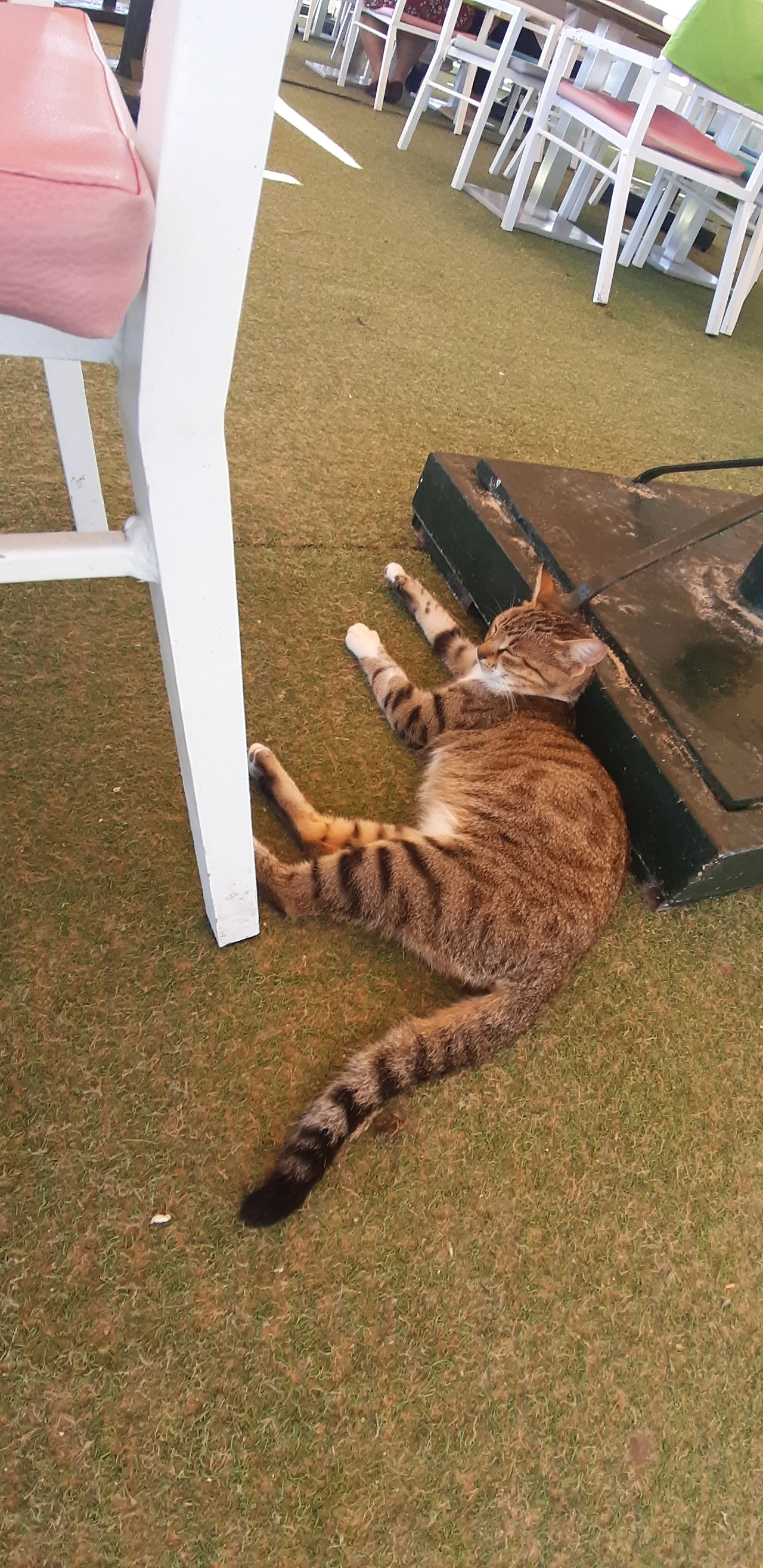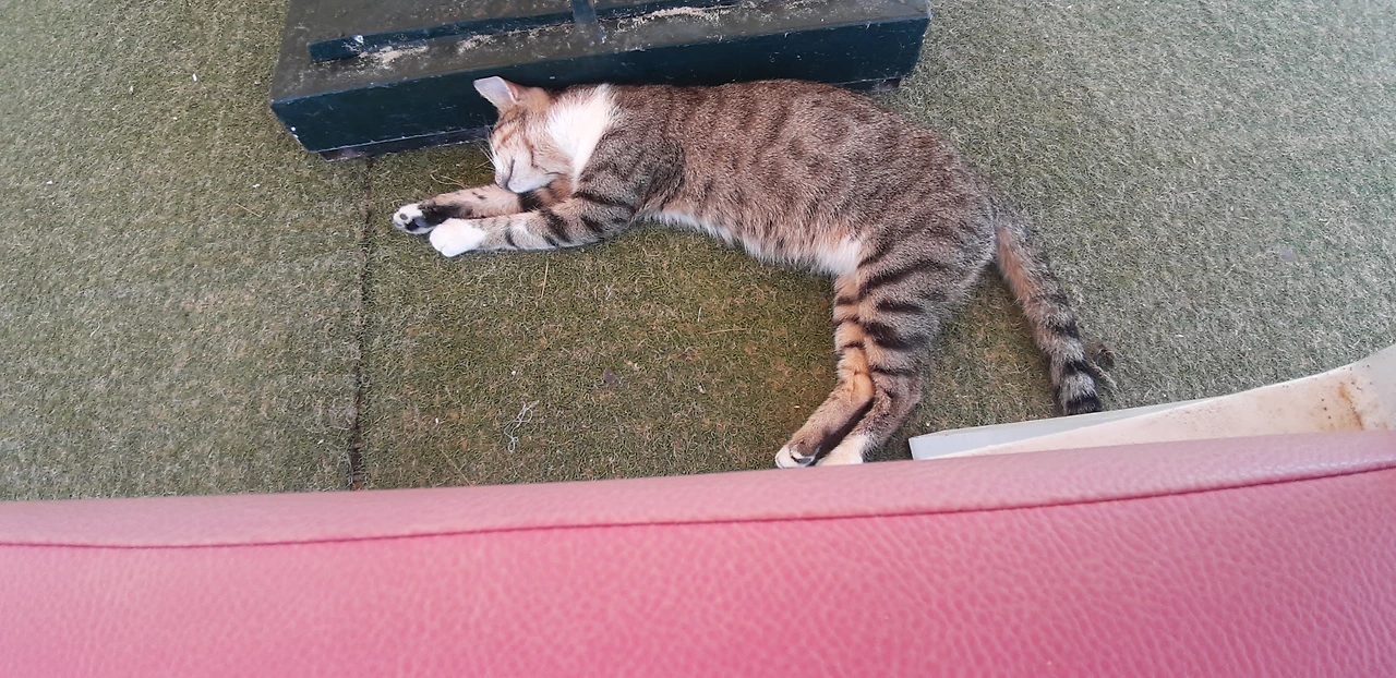 # 끝으로 식당 안에서 내가 조금 떼어준 쇠고기 살로메 먹고 낮잠 잔 고양이 사진들을 보낸다.여긴 문화가 고양이들에게 우호적이고 고양이들도 예쁘고 사람들과 친근하게 행동한다(인심 좋은 손님들은 살로메 한 장을 툭 던져주서 그런지...)다음에 와도 또 고양이들과 놀고 싶다. 고양이들처럼 아무생각없이 편하게 늘어져 자고 싶은 하마 메드 해변 햇빛이다 ㅎㅎㅎ.