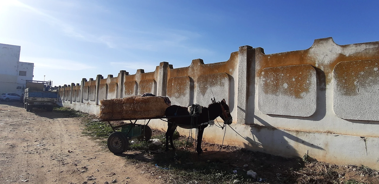 재래시장 안을 둘러보는 도중 말이나 당나귀를 타고 온 튀니스 시골 가족들을 봤다. 재밌었다. 날짜를 잡아 옷까지 잘 차려입고 나온 차림의 가족 나들이 같았다. 가족의 서열을 알 수 있는 흥미로운 관찰이다. 말과 당나귀 수레 위엔 시장에서 산 물건들이 테트리스 블록 쌓기처럼 잔뜩 실려있었고 어른들, 어린아이들까지... 거의 70년대 한국 장터 같았다.