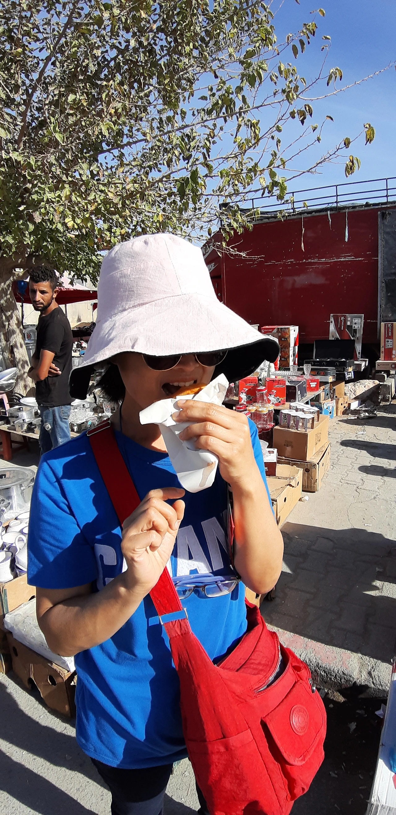 옆집 이탈리아 부부가 하마메드에서 좀 떨어진 재래시장 가지 않겠냐고.. 해서 놀러 가는 마음으로 시장 가방을 들고 동행했다. 30분을 차로 달렸나 재래시장 주차장에 도착했다. 근데 주차장에 이게 서 있었다.