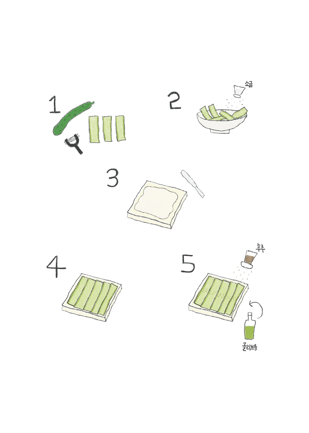 1. 오이를 슬라이스 한다
