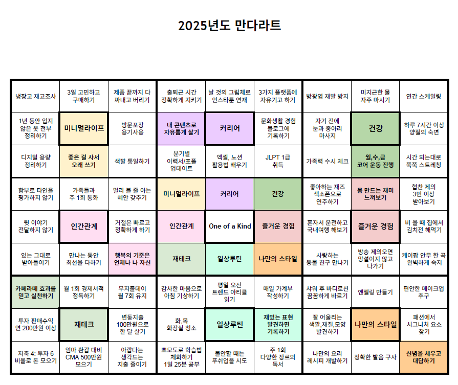 오늘은 이틀에 걸쳐 만다라트 계획표를 작성했다