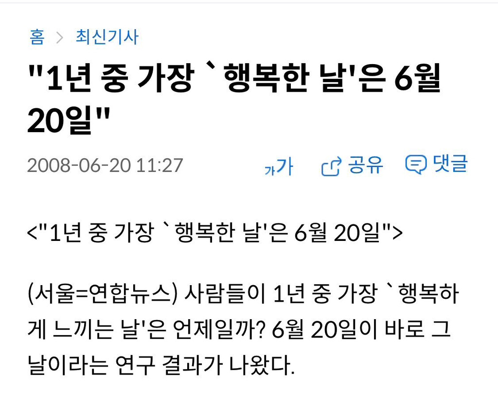 6월 20일은 1년 중 가장 '행복한 날' 이라는 연구결과가 있는데요