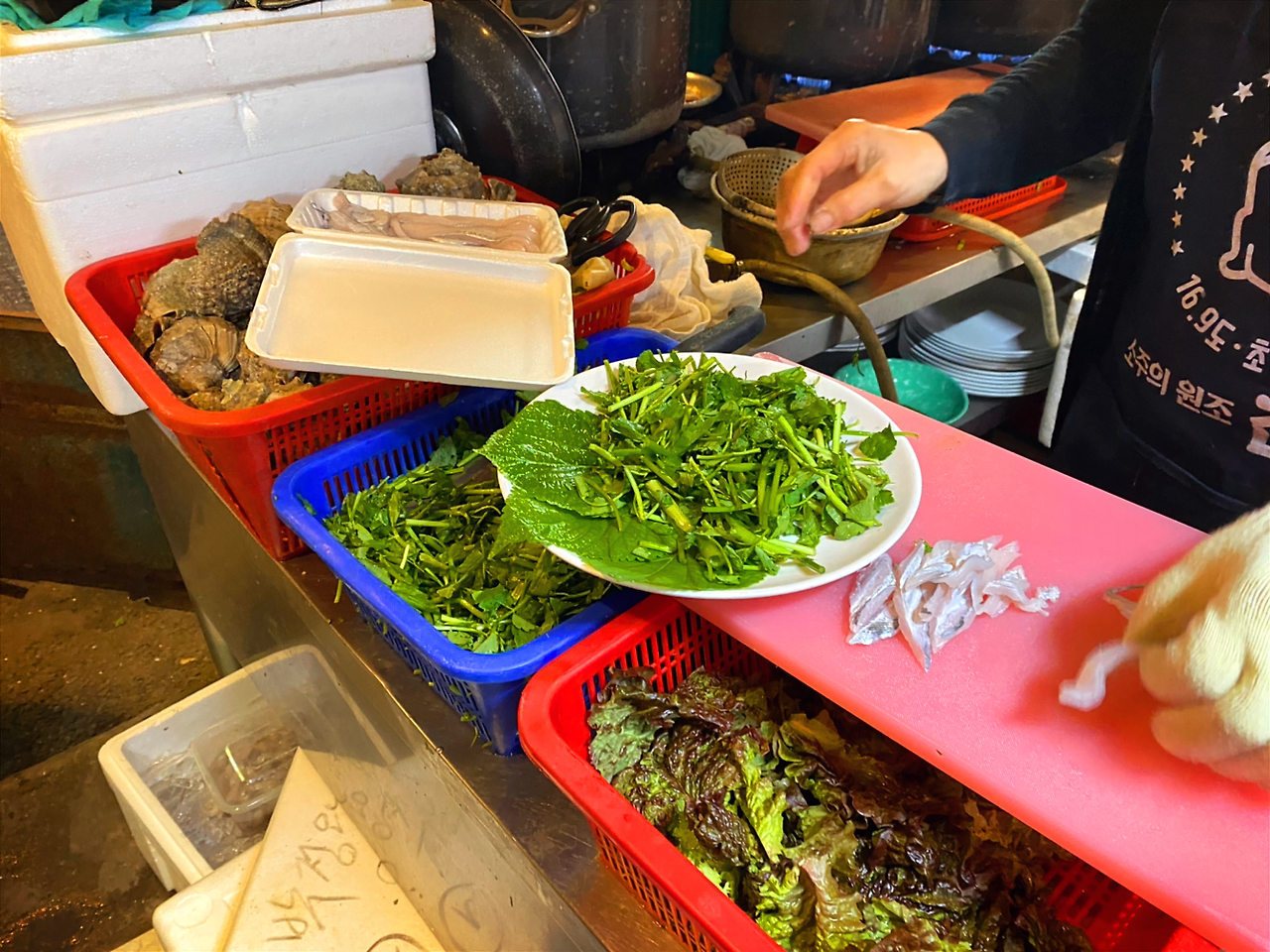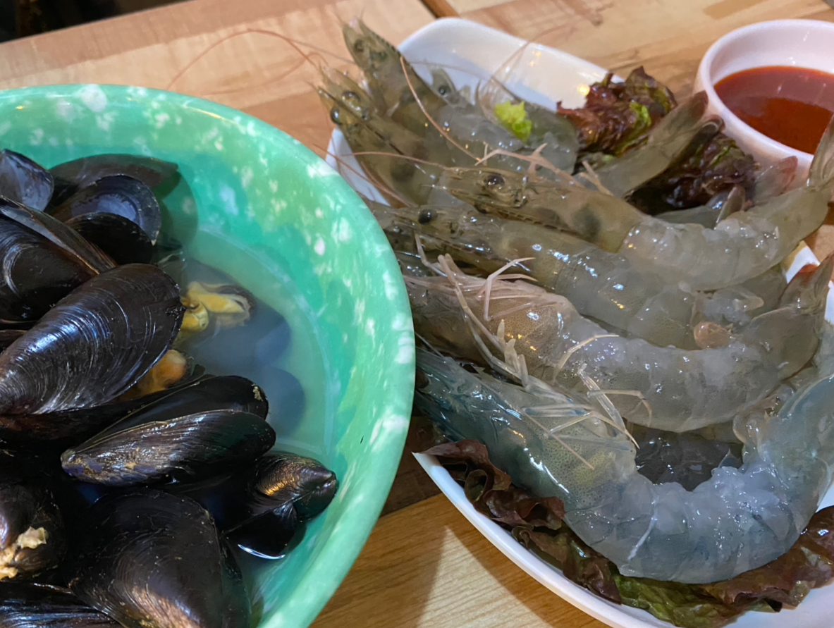 세 번째로는 삶은 해산물을!