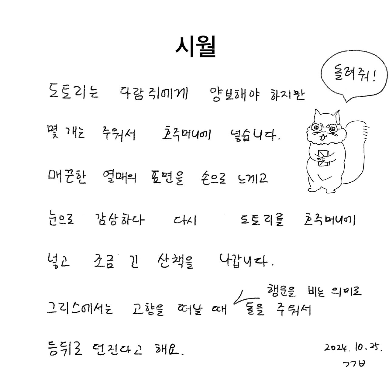 따듯한 것을 좋아합니다. 학생 때는 질문이 없었는데 나이가 들면서 질문이 생겨 고생하는 중입니다.