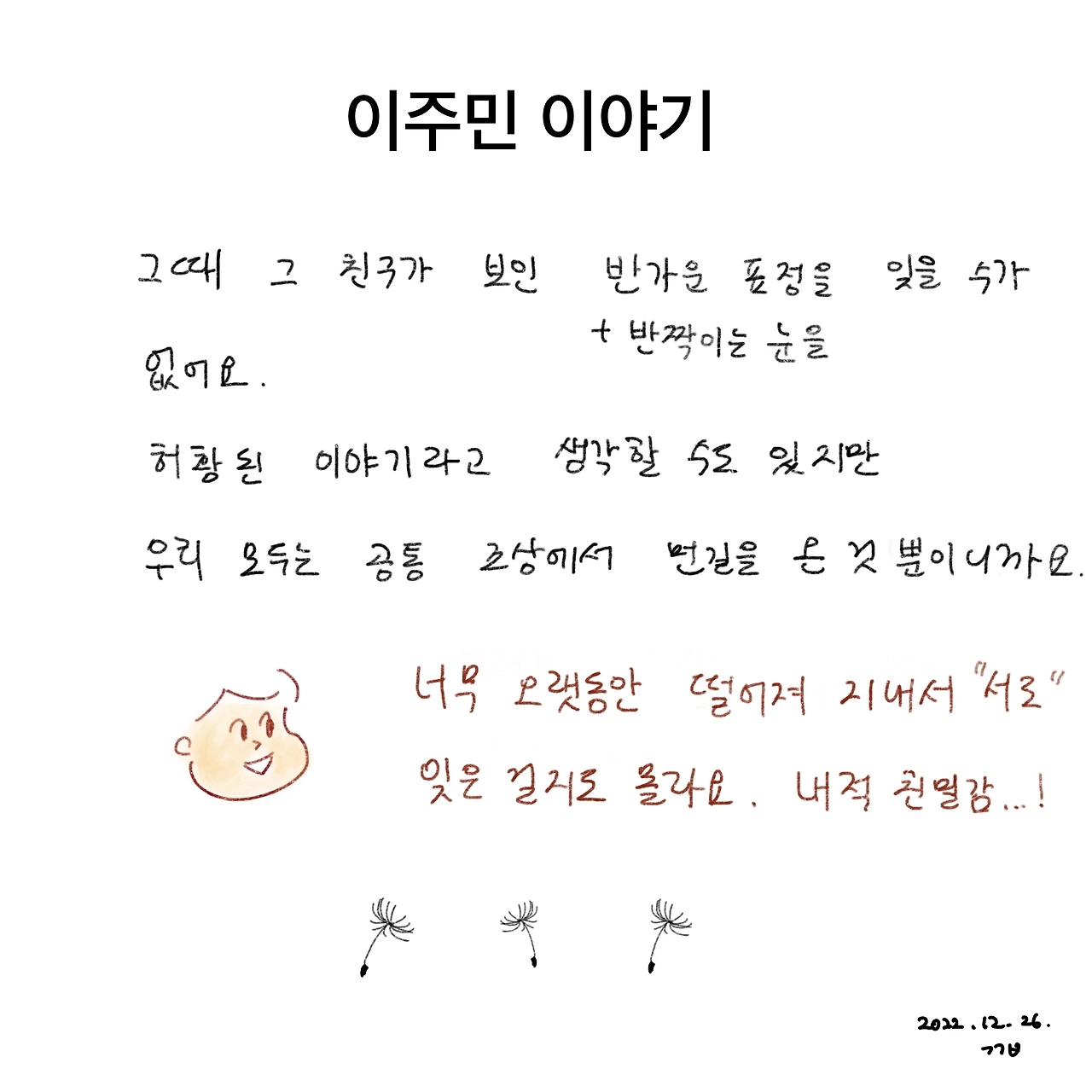 따듯한 것을 좋아합니다. 학생 때는 질문이 없었는데 나이가 들면서 질문이 생겨 고생하는 중입니다.