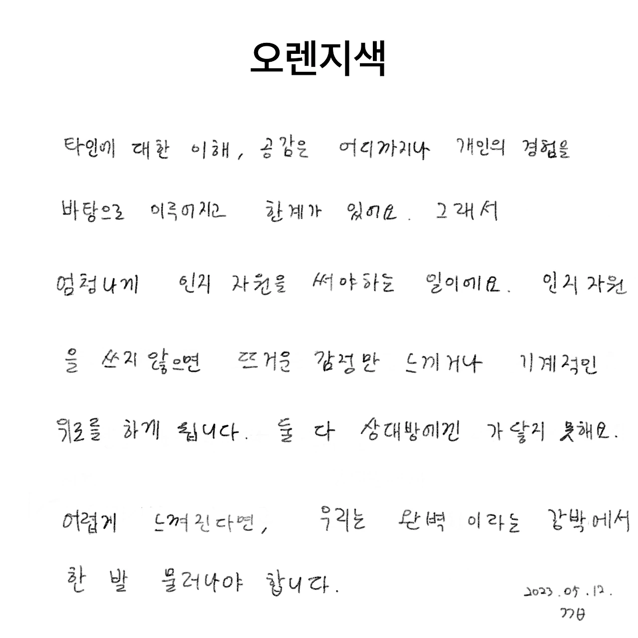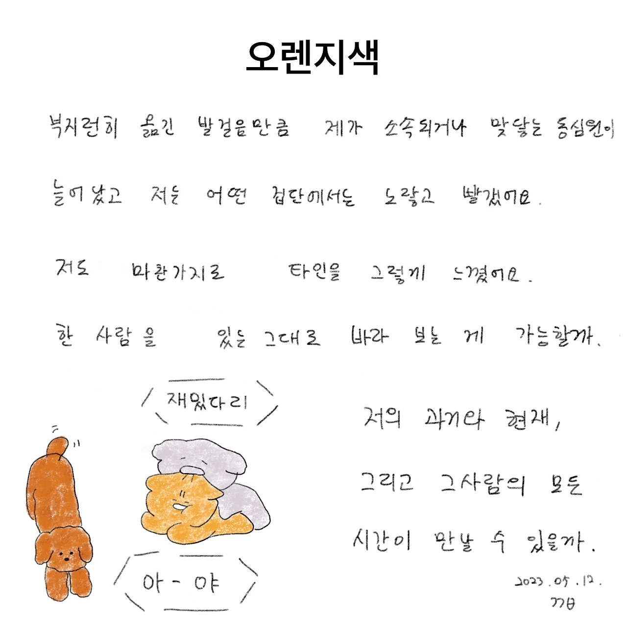 따듯한 것을 좋아합니다. 학생 때는 질문이 없었는데 나이가 들면서 질문이 생겨 고생하는 중입니다.