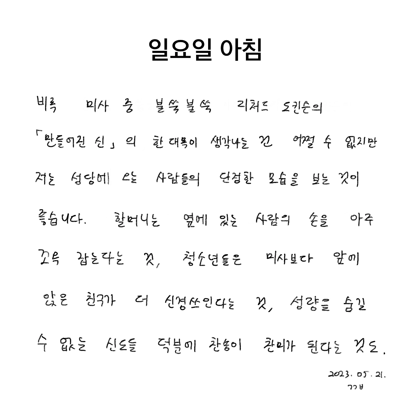 따듯한 것을 좋아합니다. 학생 때는 질문이 없었는데 나이가 들면서 질문이 생겨 고생하는 중입니다.