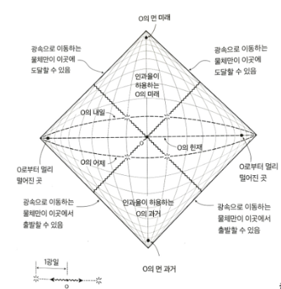 펜로즈는 거리가 ‘0’이 되면서도 점들이 겹치지 않는 ‘민코프스키 시공간’을 이렇게 설명한다.