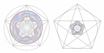 이제 정보는 더 이상 차가운 데이터가 아니다. HaPPY 코드(오각형 네트워크)가 우주를 지키는 '방패'였다면, 그 내부를 지탱하는 뼈대는 황금비로 얽힌 '오각별(펜타그램)'이다. 우주가 짠 오각형의 그물망을 현미경으로 들여다보면, 그 모든 오각형의 내부에는 이미 황금비로 얽힌 오각별이 교차하고 있다. 이는 보이지 않는 양자 정보의 그물망(오각형)이, 생명의 질서를 지탱할 기하학적 도면(오각별)을 이미 태생적으로 품고 있었음을 나타내준다.