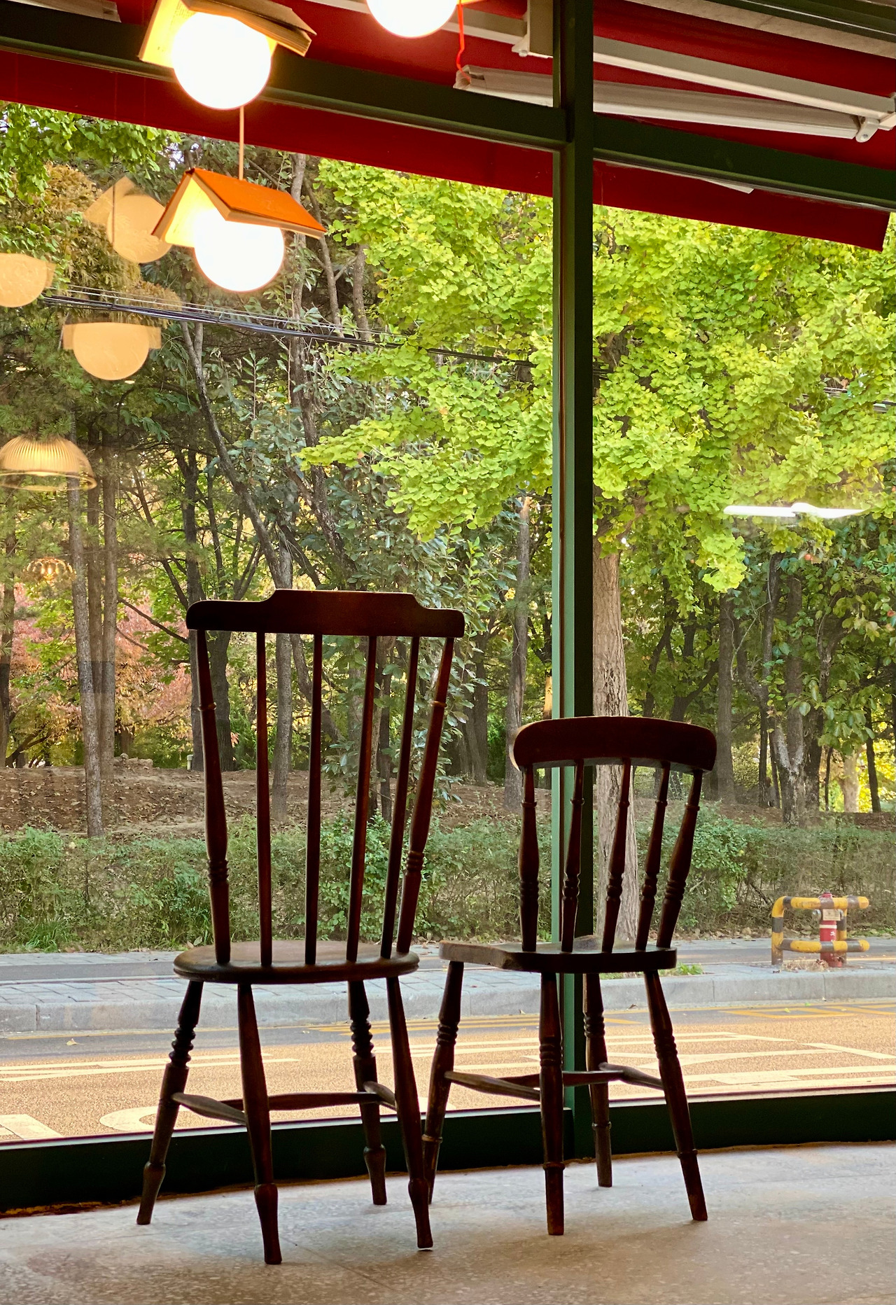 아직도 책방에 놓여있는 이 의자들을 보면 마음배가 든든하게 불러옵니다. 책방에 놓인 다른 가구들에 비하면 제법 값이 나가는 아이들이지만, 사진을 찍을 때마다 제 몫을 톡톡히 하는 녀석들이기도 하지요. (역시 가격은 중요한 요소일까요? 그럼에도 불구하고 최소한의 비용으로 최대한의 보석을 찾아낸 나야나, 라고 우기고 싶습니다만 ㅎㅎㅎ ) 그 때 의자 한개의 가격이 얼마였는지, 정확하게 기억이 나지는 않습니다. 아마도, 키 큰 놈이 17만원, 키작은 놈이 15만원 정도였던 걸로 기억하는데, 이태원의 가구 거리에도 뭔가 기성품 같은 느낌의 10만원 초반 의자들이 즐비했습니다. 반대로 30만원을 훌쩍 넘어서는 더 마음에 드는 독특한 의자들도 많았어요. 가격과 느낌 사이에서, 한참을 오락가락 오가다가, 선택한 두 녀석이었습니다. 우리의 초라한 예산에는 꽤나 큰 돈이라는 생각이 들어서, 의자 한개는 내 사비로 지불하고, 책방 문닫는 날 , 내가 가지고 와야하나 언니에게 소심한 질문을 했던 기억도 납니다. 하지만 언니는 흔쾌히, 의자 두개의 값을 지불해 주었습니다. ( 다행히 언니도 두고두고 이 의자들을 애정했어요.)