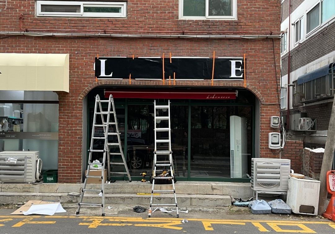 책방에 간판이 생길 무렵, 옆집에도 아이보리빛 어닝이 생기더니 뚝딱뚝딱 공사를 시작했습니다.