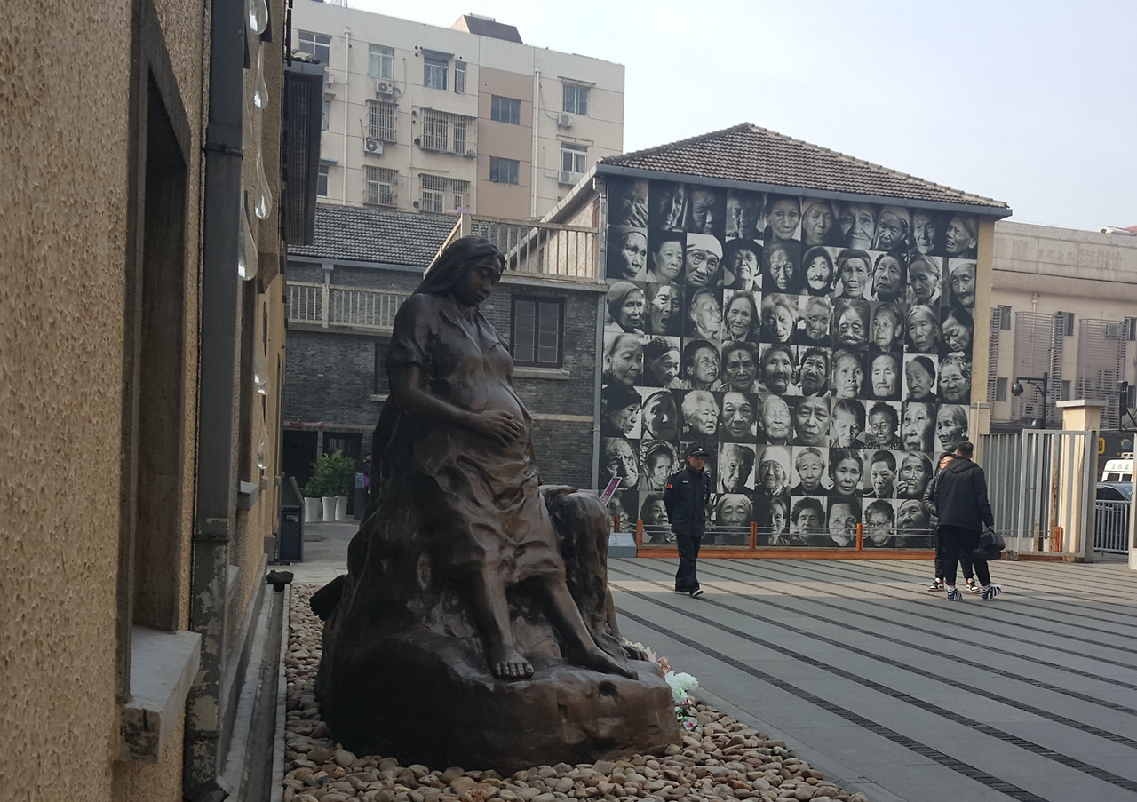 난징에 있는 아시아 최대 규모의 위안부 유적지인 이제항위안소다. 입구에 있는 임신한 여성의 동상이 바로 우리나라 (고) 박영심 할머님의 동상이다. 벽면에는 70여 명의 여러 나라 위안부 할머니의 사진이 걸려있다.