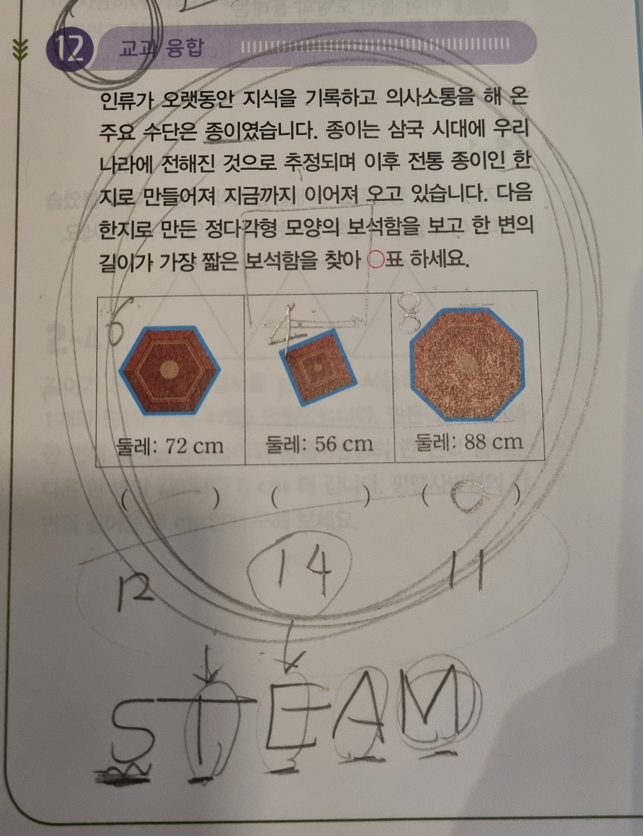 우린 둘레 계산이 왜 필요한지를 몸으로 느꼈다. 실제 이 보석함을 만든다면 둘레를 알아야는 건지 넓이를 따져봐야 하는 건지 의심을 하기 시작했다.