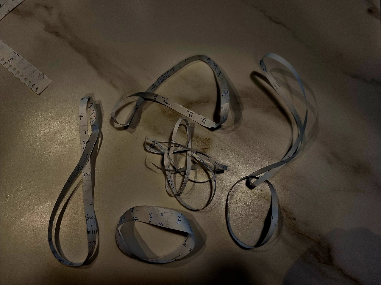 연습장을 뜯어 가늘게 접어 원 띠로 하나 만들고,