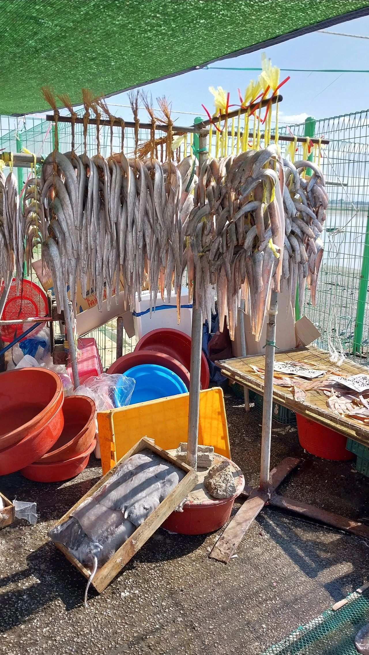 입구에 들어서자 풀치가 길게 몸을 늘어 뜨리고 철봉에 메어 달리기라도 하듯 해풍을 맞아 꼬들꼬들해져 간다. 풀치는 작은 갈치 말린 것을 뜻한다. 풀치조림은 부안사람들이 좋아하는 향토음식이다. 풋호박을 넣고 얼큰하게 지져먹으면 밥 한 그릇이 뚝딱 없어지는 최고의 맛이다. 어전 한 곳이 눈에 들어오는데 바다에서 잡아 올린 갖가지 말린 생선들이 손님을 기다리고 있었다. 굴비가 좋아 보여 조금 샀다. 저녁에 구워 먹으면 맛있는 밥상이 될 것 같은데 굴비 냄새가 온 동네를 홀리지 않을까 걱정이 된다.