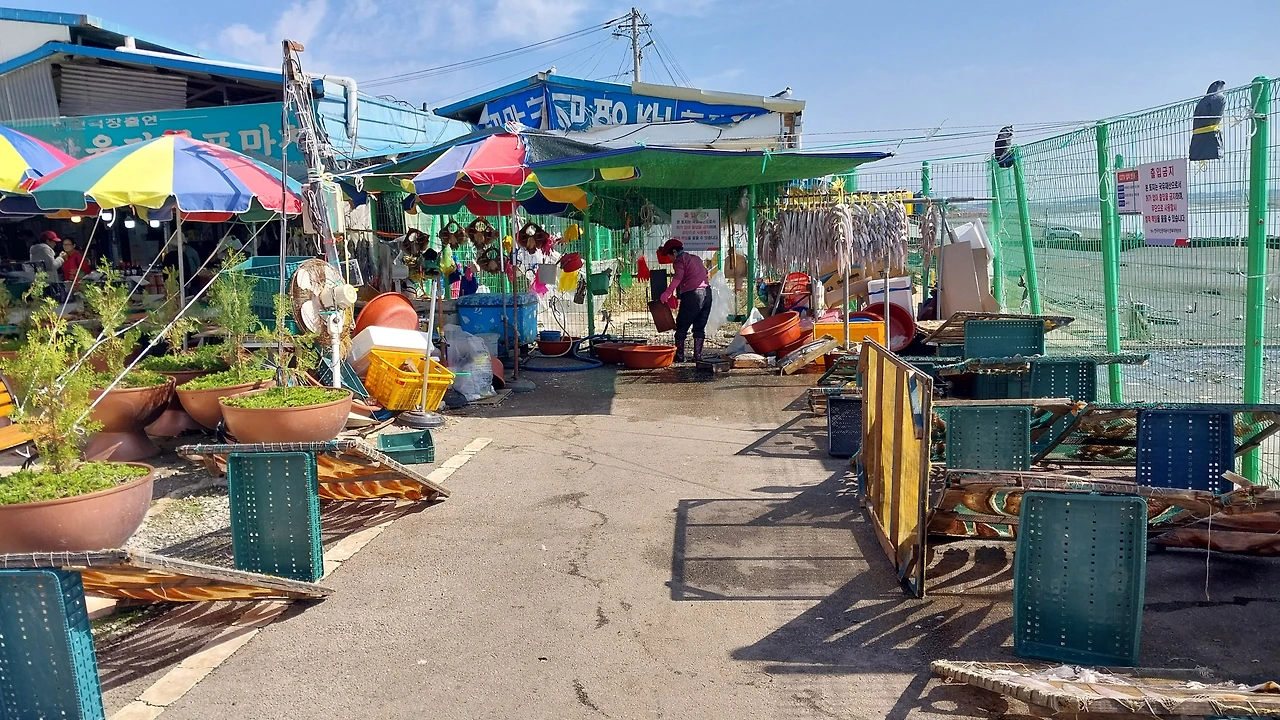여기는 갯네와 비린내가 솔솔 풍기는 바닷가 곰소항이다. 한가히 노는 갈매기 때들은 누가 봐도 아무 일 없는 평화로운 모습이다. 내가 찾아 간 그 시점에 바닷물은 갯벌에 물든 회색빛을 띠며, 넓은 바다는 물양이 절반밖에 안 돼 보였었다. 썰물 때인지, 아님 밀물 때인지, 감을 잡기 어려운 난이도였다.