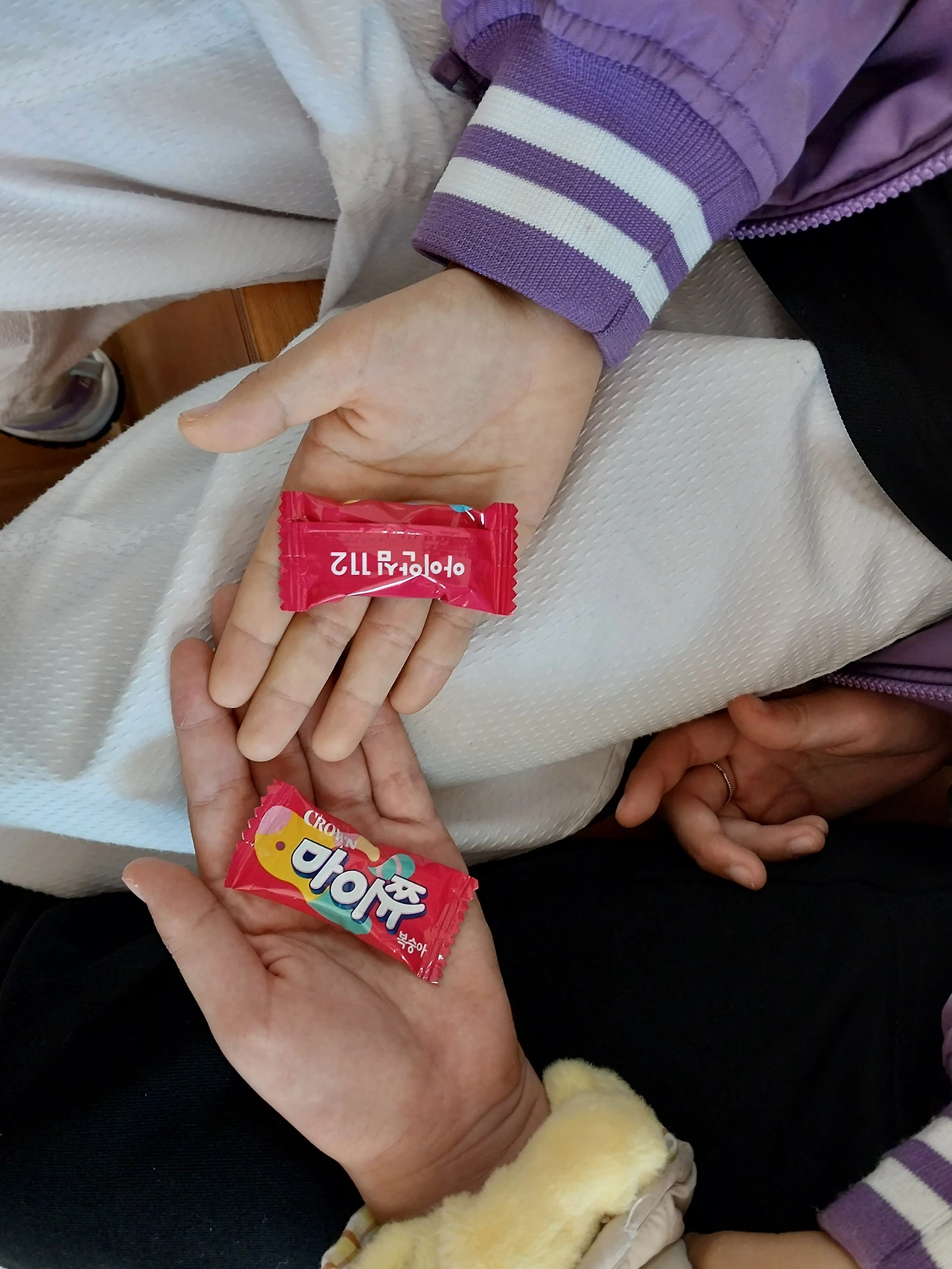 초등학교 아이들이 수업을 마치고 하교할 시간이 되면 학원차를 타려고, 또는 엄마와 만나기 위해 학교에 마련된 대기 장소로 모이게 된다. 아이들의 하교를 도와주는 자원봉사자로 일하면서, 그곳에 모인 아이들을 하나씩 알아가게 되고 만남은 친숙하게 가까워졌다. 그 이유 중 하나를 말한다면 아마도, 아이들이 좋아하는 조그만 과자나 사탕이 일등공신이 되었다고 내세우고 싶다. 조그만 간식에도 좋아하는 모습들을 보면 너무 사랑스럽고 귀여운 존재들이다. 예쁜 아이들을 위해 일주일에 한두 번은 꼭 준비해 간다.