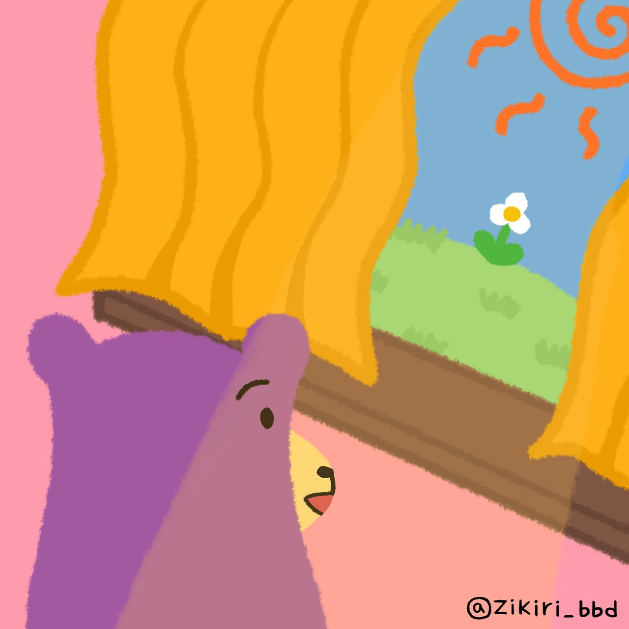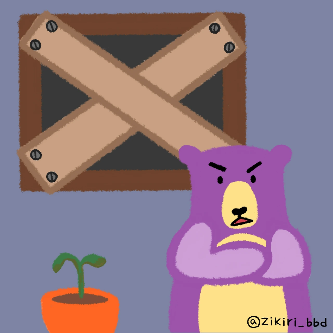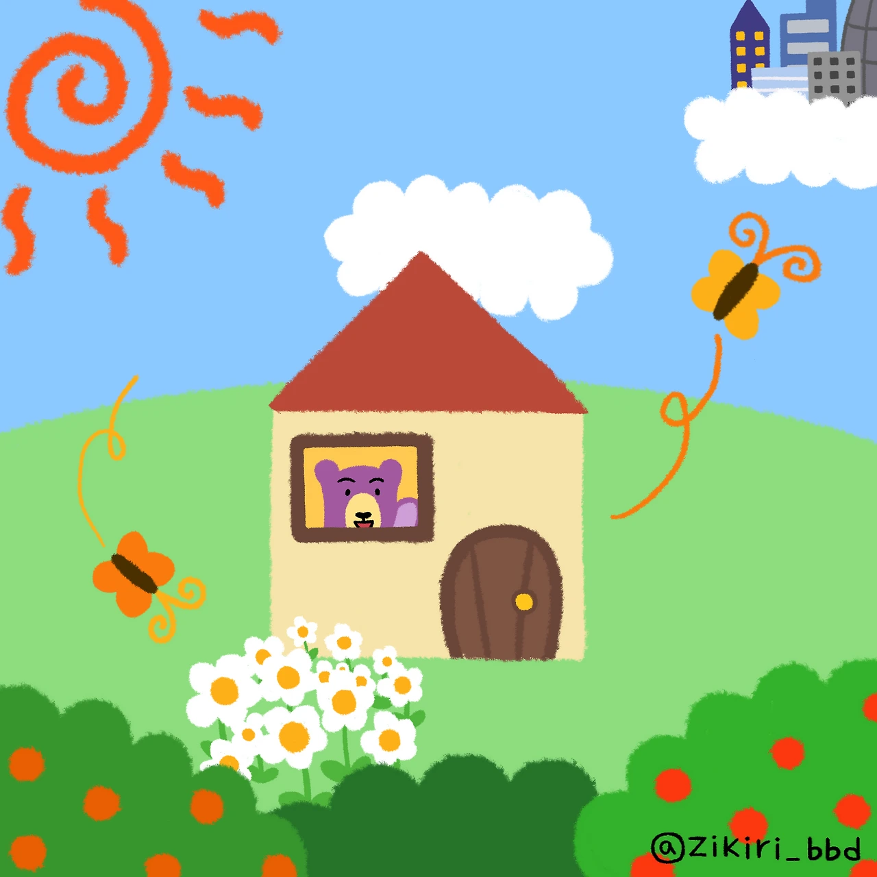 작은 집에서 나오지 않는 보라 곰