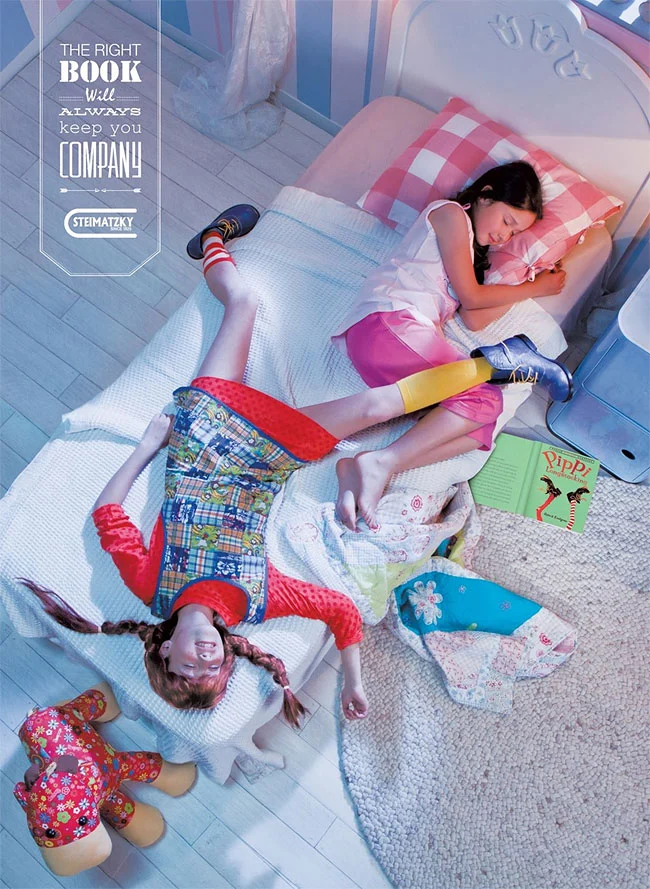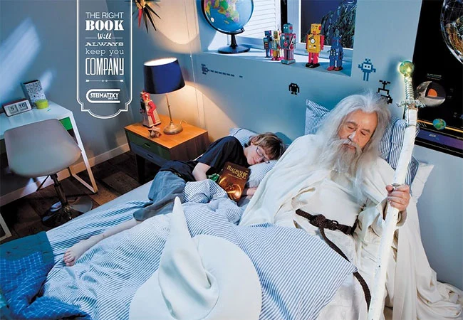 이는 이스라엘에서 가장 크고 오래된 서점인 Steimatzky Books의 광고 캠페인의 문구이다. 서로 다른 여섯 권의 책을 읽다 잠든 주인공 옆에는 간달프, 셜록홈즈, 삐삐 등이 함께 누워있다. 책을 읽다 잠들면 책의 등장인물이 나와 함께한다. 꿈을 나누고, 함께 꿈꾼다.