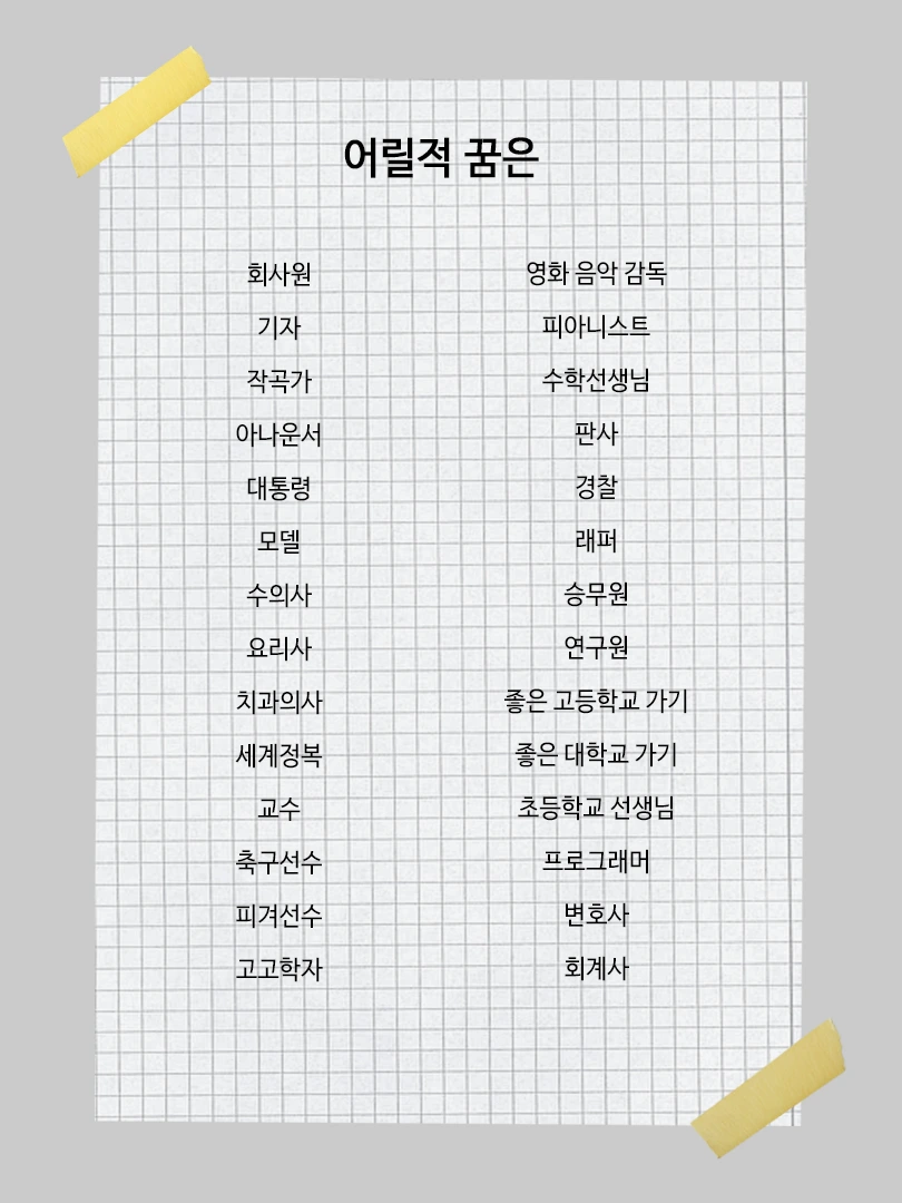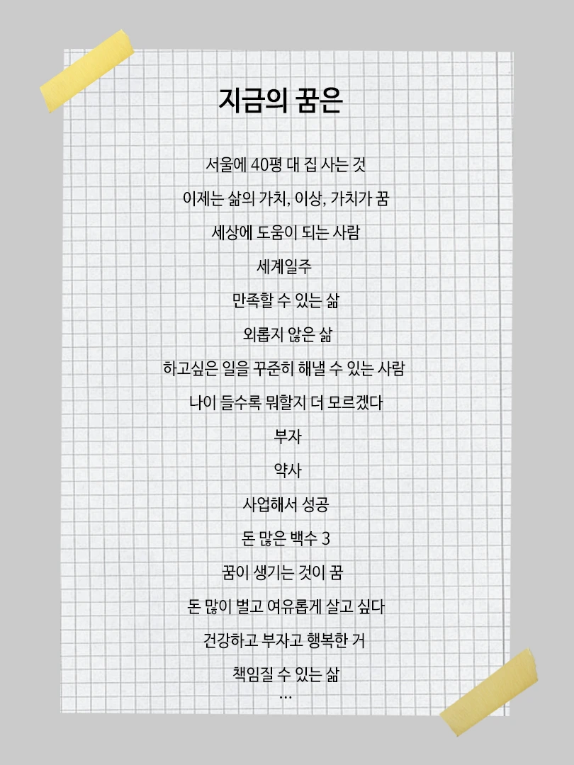 지인들에게 어릴적 꿈에 대해 물었고, 지금의 꿈에 대해 물었다.