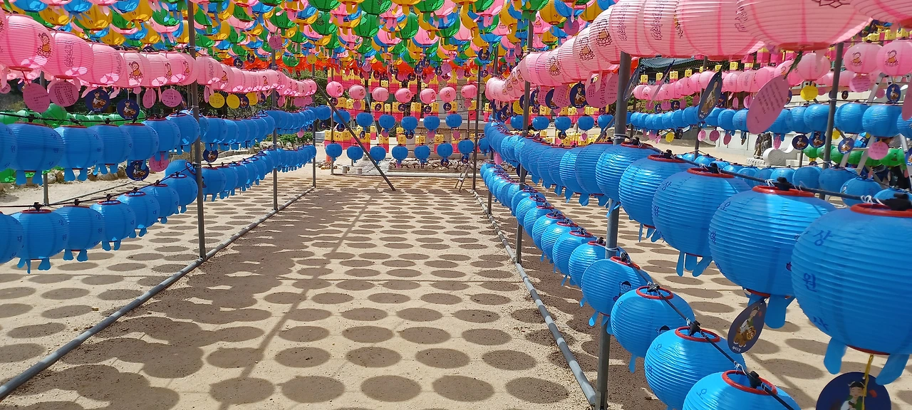 '부처님오신날' 즈음해서 큰절이 있는 거리마다, 마을 들머리마다, 산길마다 빛깔 고운 꽃이 핀 것처럼 알록달록 고운 빛깔의 연등이 매달려있다.