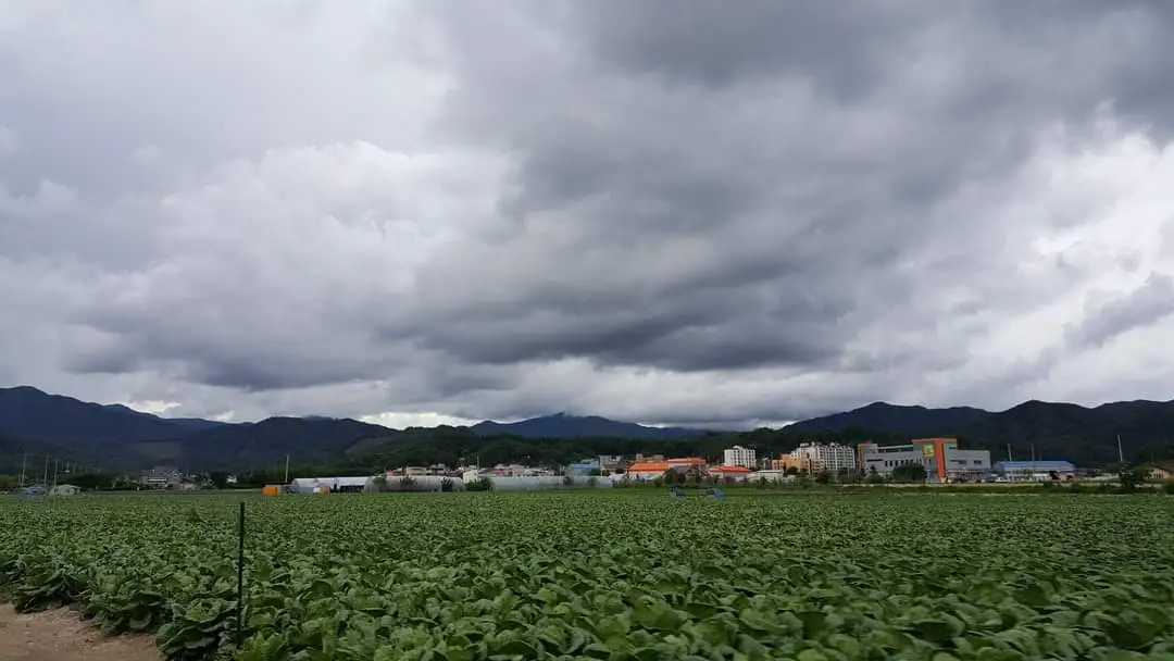 마을 들머리와 내 방 창 풍경