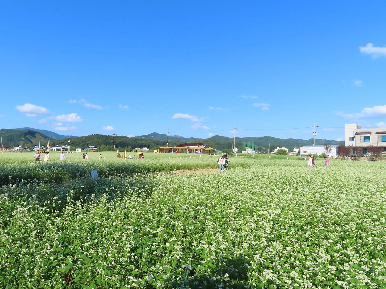 손뼉에 화답하듯 낭랑한 목소리로 자작시 한 편을 매끄럽게 낭송한다. 목소리가 낭송에 어울렸을 뿐만이 아니라 듣기에도 좋았다. 우리는 다시 한번 손뼉을 아까보다 더 크게 쳐주었다. 낭송 실력이 예사롭지 않다는 말에 '예전에는 시낭송 모임을 했다'는 고백(?)을 했다. 아무튼, 배경 음악은 없었고 관객도 둘 밖에 안 되었지만 흐드러진 메밀꽃밭이 훌륭한 무대가 되어준 그날의 시낭송 자리는 '효석문화제'와 더없이 어울리는 자리였다.