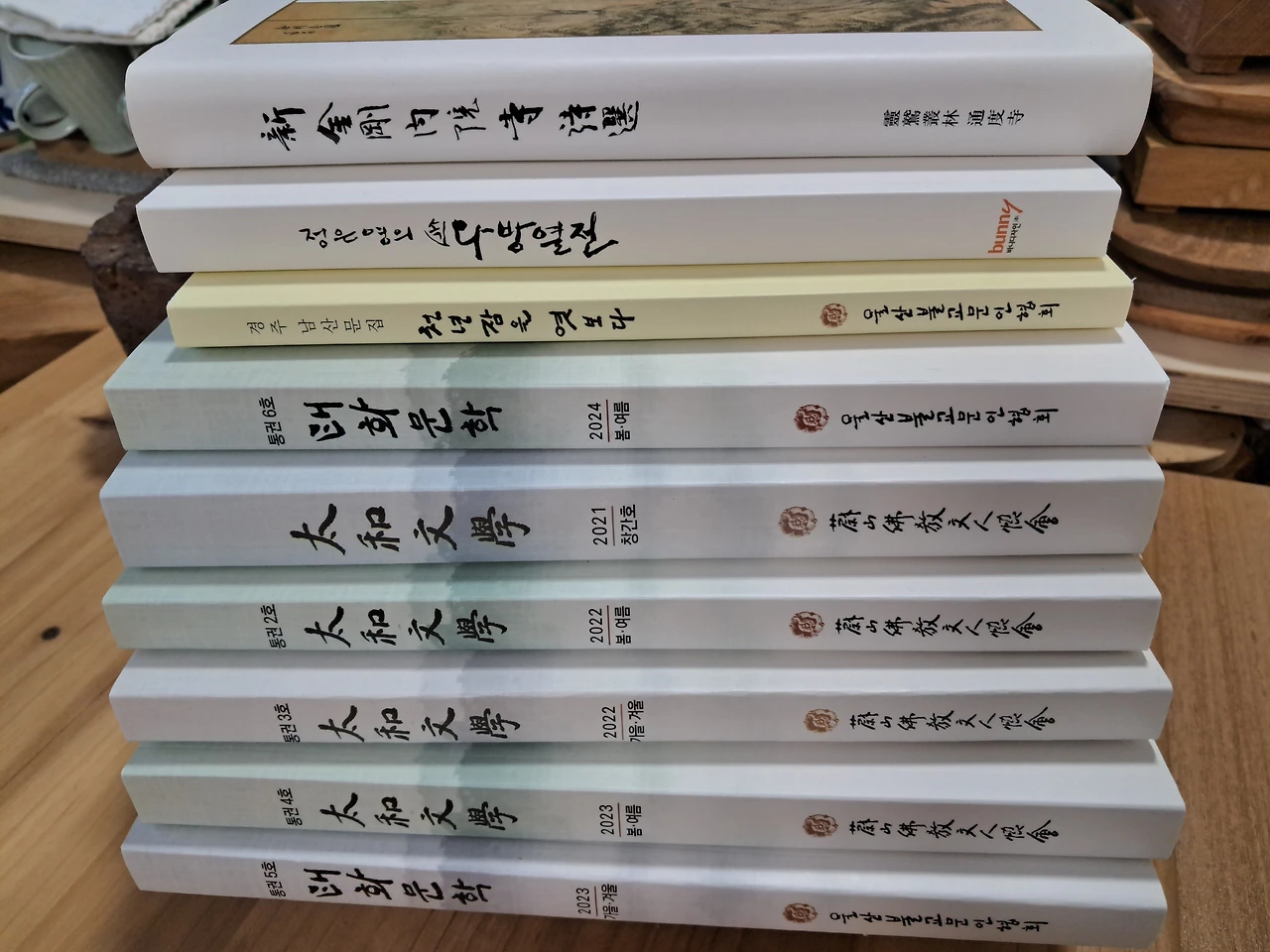 차를 마시던 이들 가운데는 울산에서 태화문학 활동과 함께 글을 쓰는 분도 있었는데 책을 보내주겠다 하시더니 정말로 한 상자를 보내왔고, 종교는 기독교지만 읽고 싶다며 <사람으로 왔는데 중생으로 갈 수는 없잖아>를 사가기도 하였고, (사인을 하기 위해 적어달라는) 이름과 함께 응원의 글도 써주어 감동을 받기도 했다.