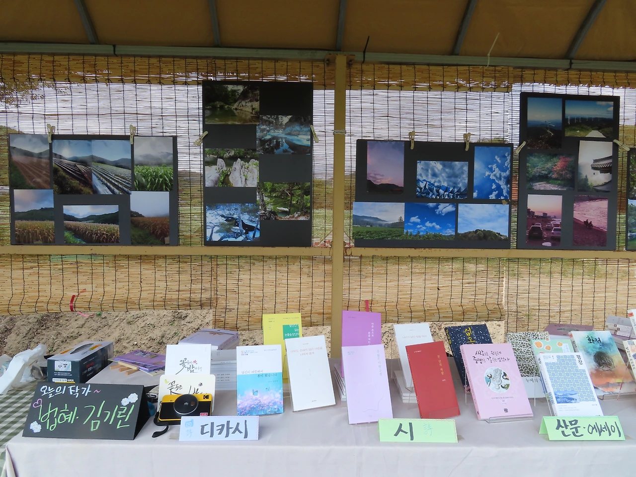 그들은 즉석 사진으로 만든 책갈피를 받더니 마음에 들었는지 디카시집을 샀고 사인도 받았다.
