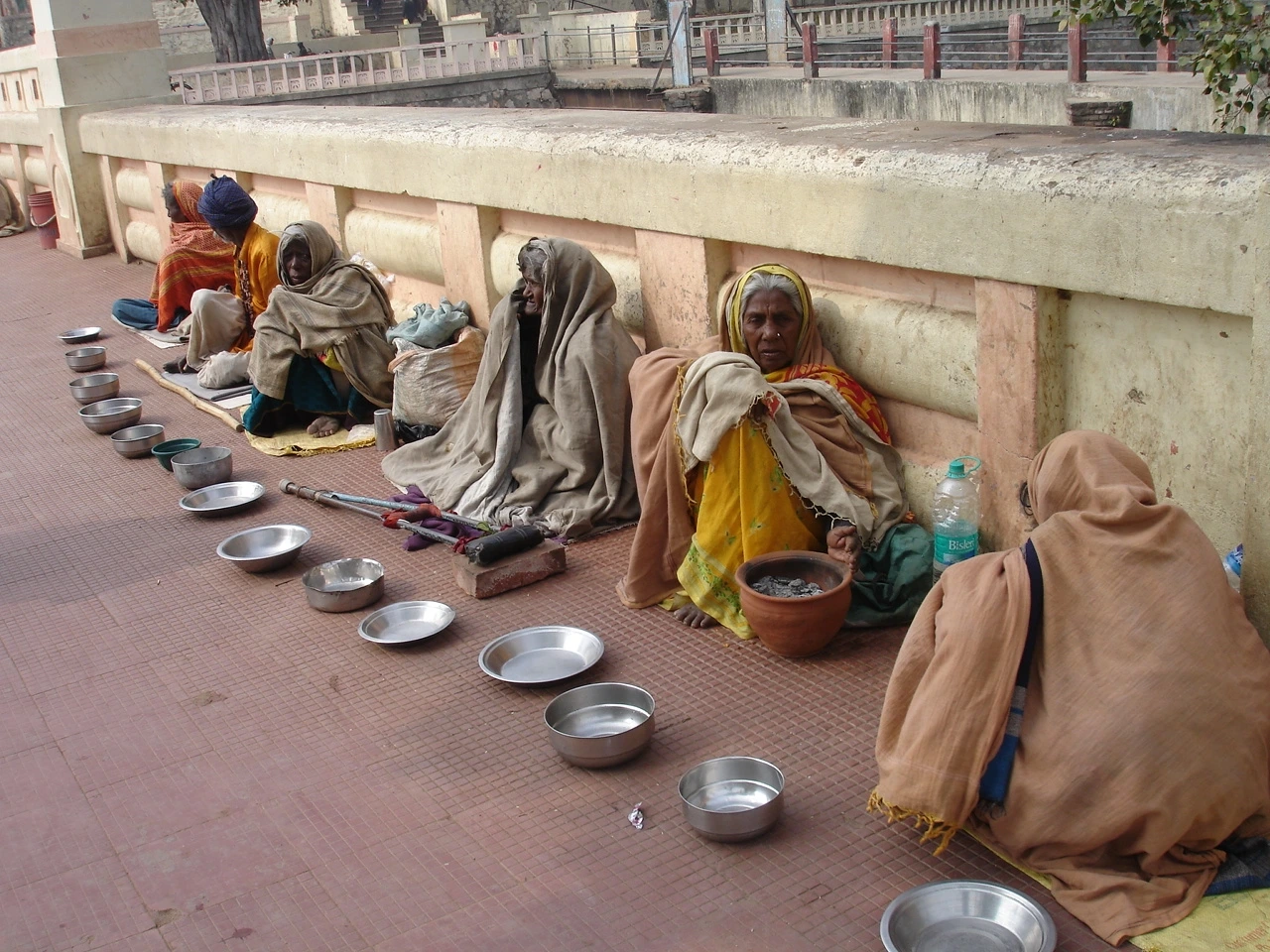 성지 들머리에 앉아 있거나 따라다니며 구걸하는 이들.