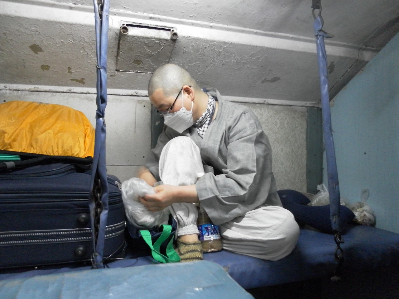 내가 탄 3등 칸의 침대는 한 사람이 반듯하게 누워 팔을 얌전하게 두어야 할 만큼의 넓이야. 그런 침대를 세 개 다 펴면 중간 침대에 누운 사람은 일어나 앉고 싶어도 그럴 수 없어. 허리를 펼 수 없는 높이거든. 말 그대로 옴싹달싹하기가 힘들어. 밤이 새고 아침이 되도록 뒤치락 엎치락하면서 가방도 지켜가며 잠을 자거나 누워있어야 하는 거지.