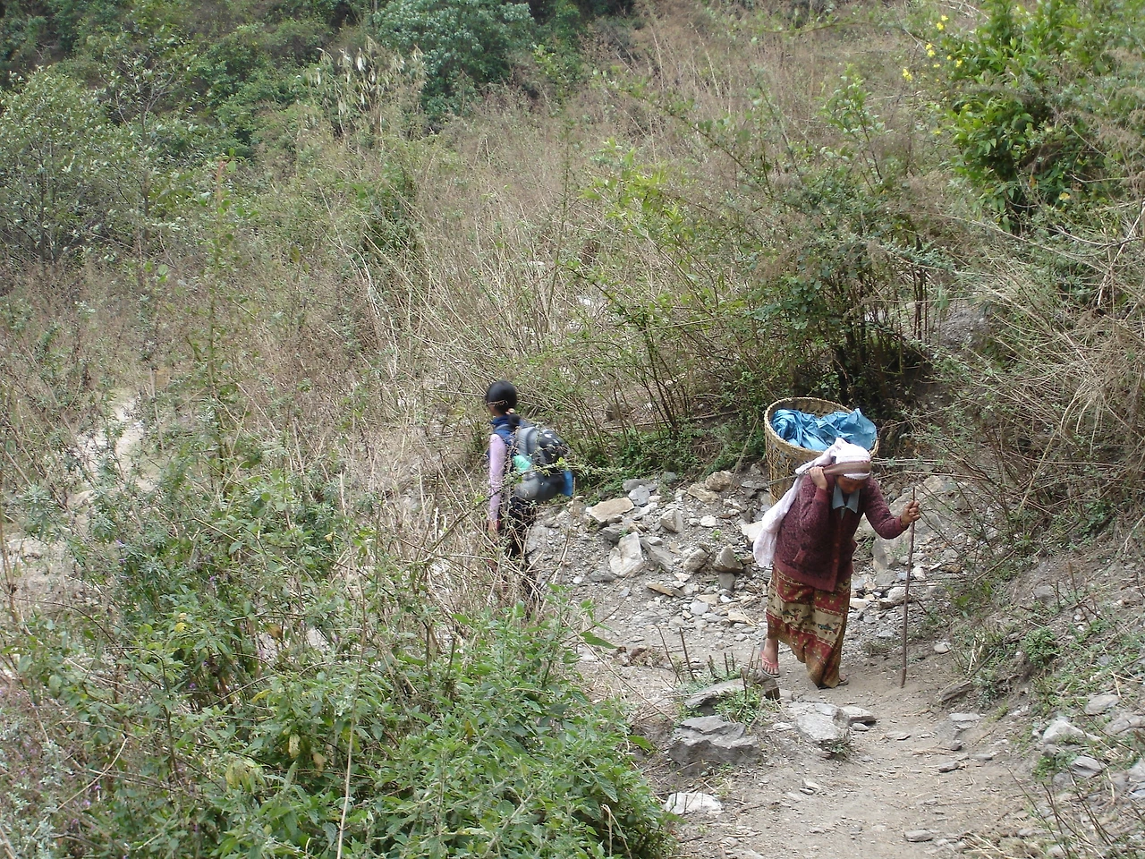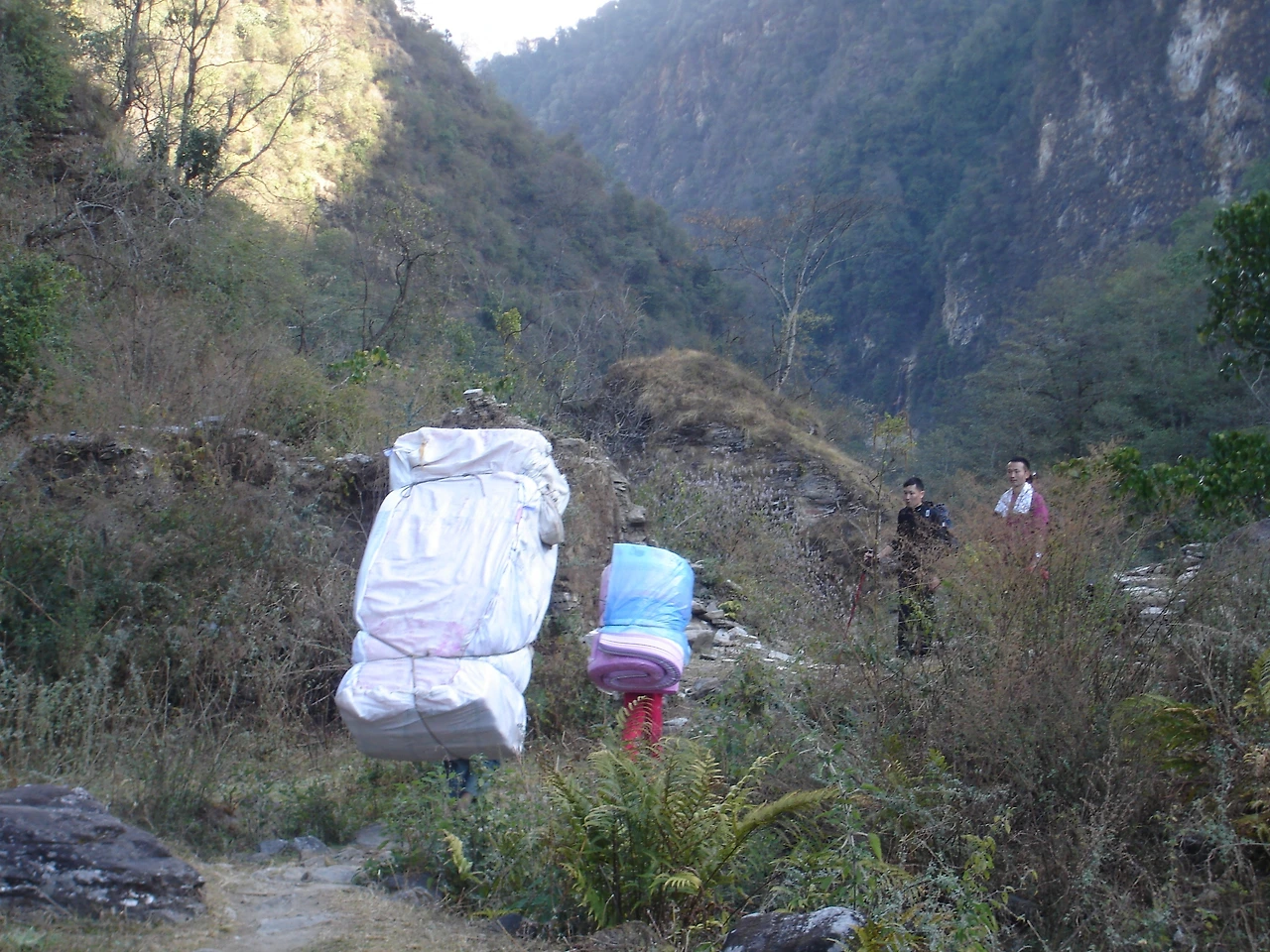 내려가는 길에 침대에 깔 매트리스와 생활용품을 지고 가는 사람들과 만났는데, 아직은 학교에 갈 나이로 보이는 사내아이도 있었어.