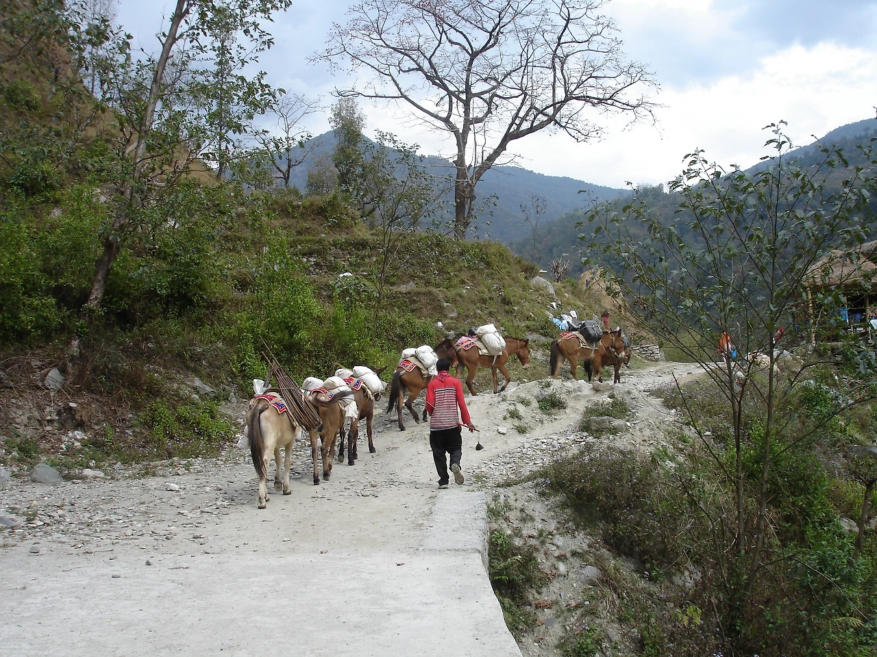 아마도 이 마을 사람들은 필요한 게 있으면 어깨와 머리로 짐을 나르는 포터(짐꾼)의 힘에 의존해 쓰는 가봐.