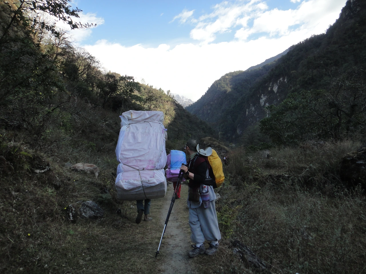 그들 몸집이나 키보다 커다란 서양 사람들의 배낭을 지고 갈 때면 배낭이 걷는 듯 보이는데 그렇게 큰 짐을 지고도 저만큼 앞서가곤 하여 할 말을 잃게 만든 사람들이었거든.