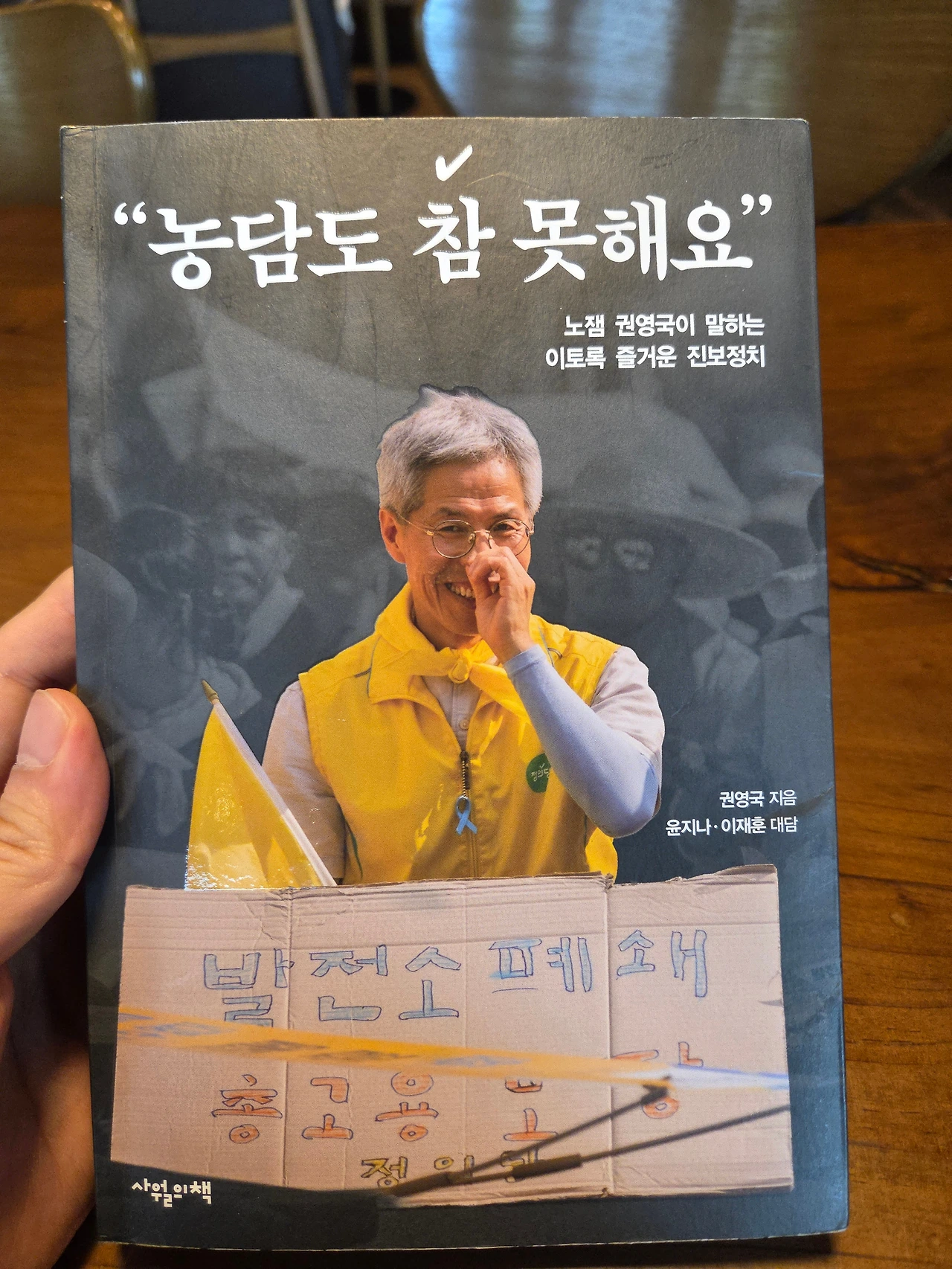 2016년부터, 군생활 3년을 제외하더라도 7년이 넘게 정의당 당원이다. 당의 전성기와 쇠퇴기를 모두 함께한 평당원으로서 이번 지방선거에서 정의당이 좋은 성과를 거두기를 기원한다. 권영국과 정의당을 응원하는 마음 반, 과연 권영국과 정의당에게 진보정치의 미래를 맡길 수 있을까 하는 의구심 반으로 권영국 대표의 신간 <농담도 참 못해요>를 구입했다. 우리나라 진보정치에 대해 쥐뿔만큼도 보탠 것 없는 평당원이지만, 그럼에도 진보정치에 대한 애정을 가진 한 사람의 시민으로서 정의당이 잘 되기를 바라고, 그런 관점에서 정의당이 과거의 실패를 또다시 답습하지 않기를 바라며, 비판적 시각에서 이 책을 읽어보았다.