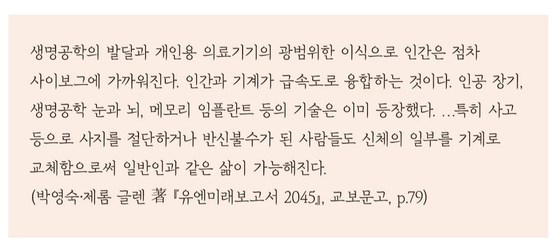 우리가 목표로 해야 할 것은 풍요로운 세상에서 모두가 기술의 혜택을 받으며, 더 건강하고 더 오래 살아가는 유토피아 시나리오다. 그러나 자원의 희소성과 자본의 논리는 결코 그런 미래를 호락호락하게 내주지 않을 것이다. 경제력과 권력을 틀어쥔 승자독식 사회와 초월적인 과학기술 사이의 그릇된 결탁은, 소수의 초인간이 다수 위에 군림하는 디스토피아로 직결될 것이다.